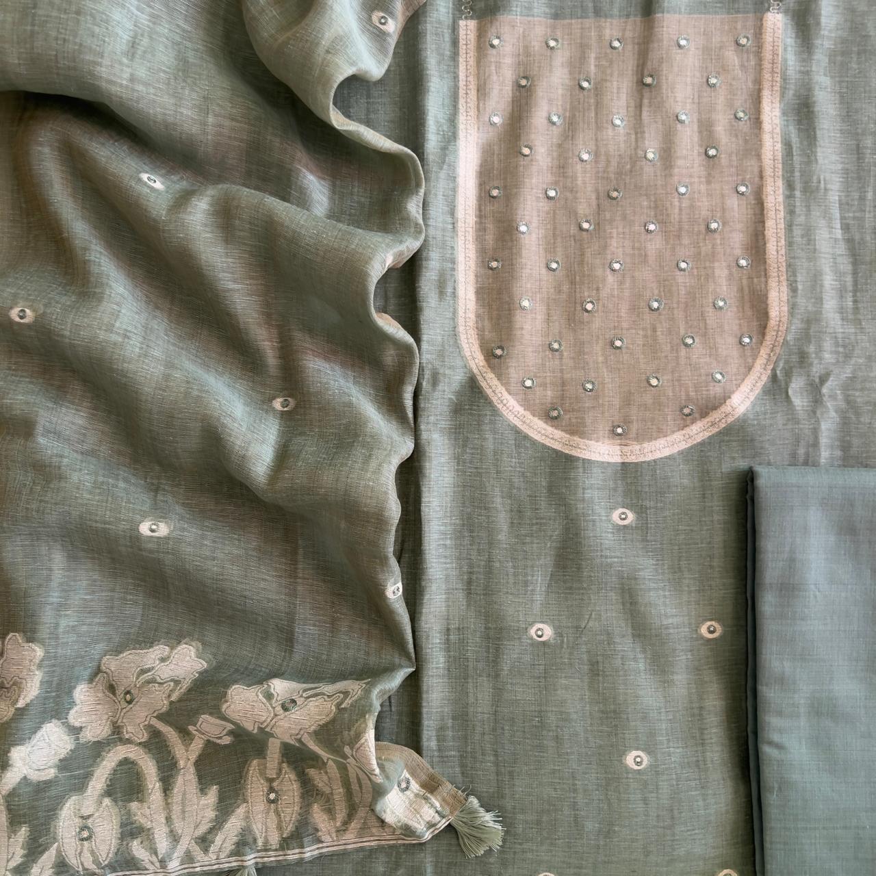 Kurta - Pure Slub Chanderi Jamdani Kurta Fine Handwork (2.5Mtr)