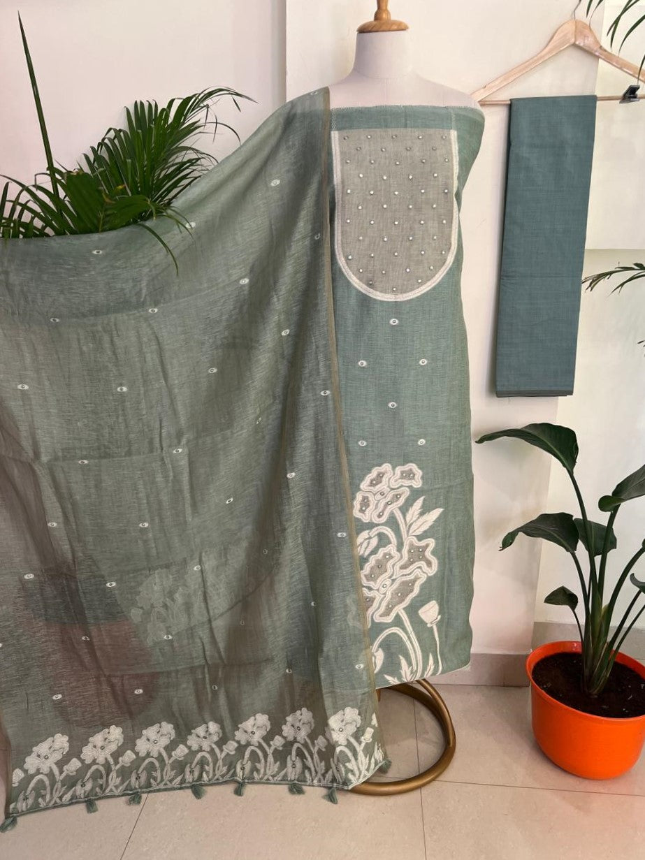 Bottom - Pure Slub Chanderi Jamdani Bottom (2.5Mtr)