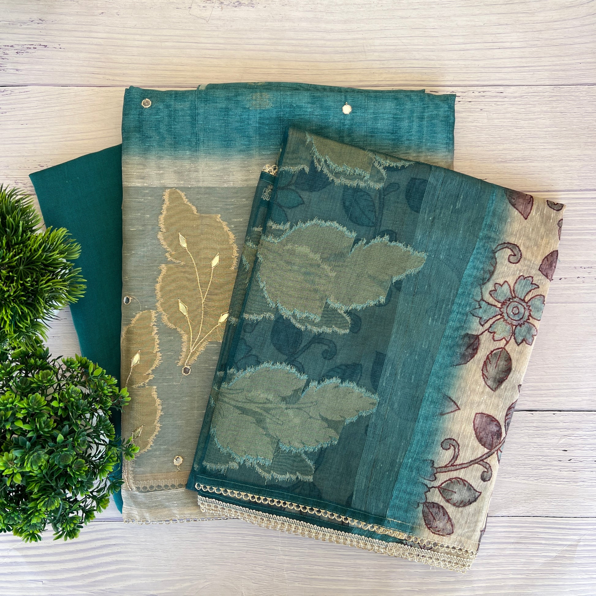 Kurta - Fine Slub Linen Chanderi Ghoota Work Kurta (2.5Mtr)