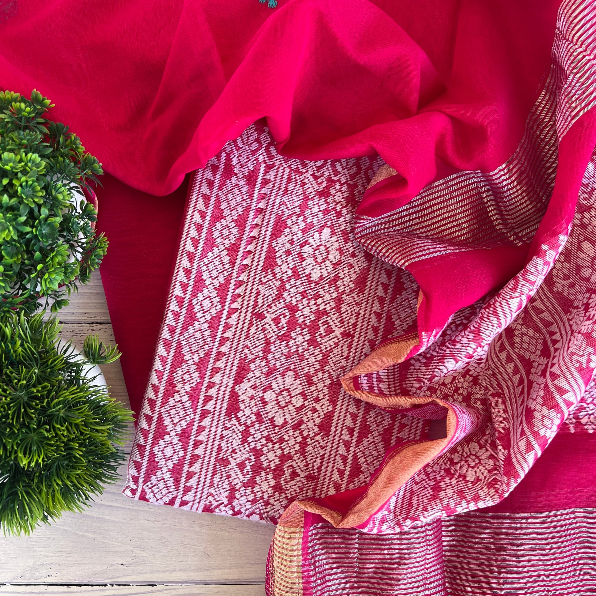 Dupatta - Pure Muslin Handwoven Bengal Jamdani Dupatta (2.5Mtr)