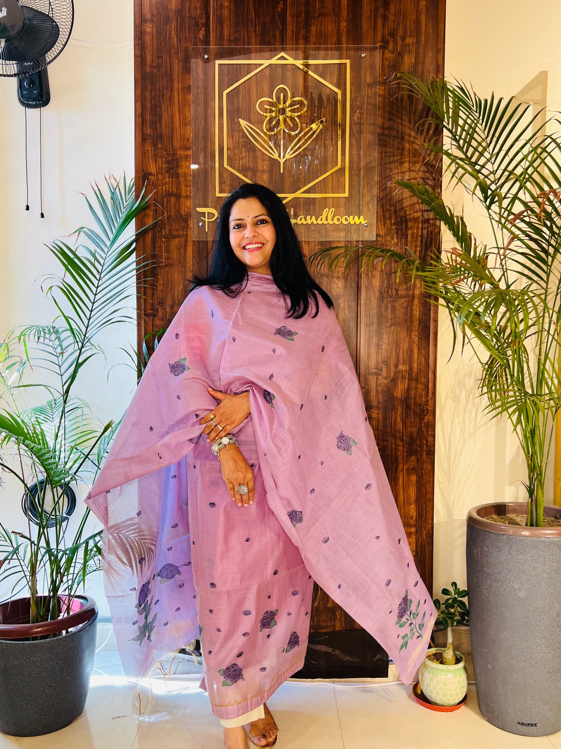 Dupatta - Fine Chanderi Silk Jamdani Dupatta With Handmade Tussles (2.5Mtr)