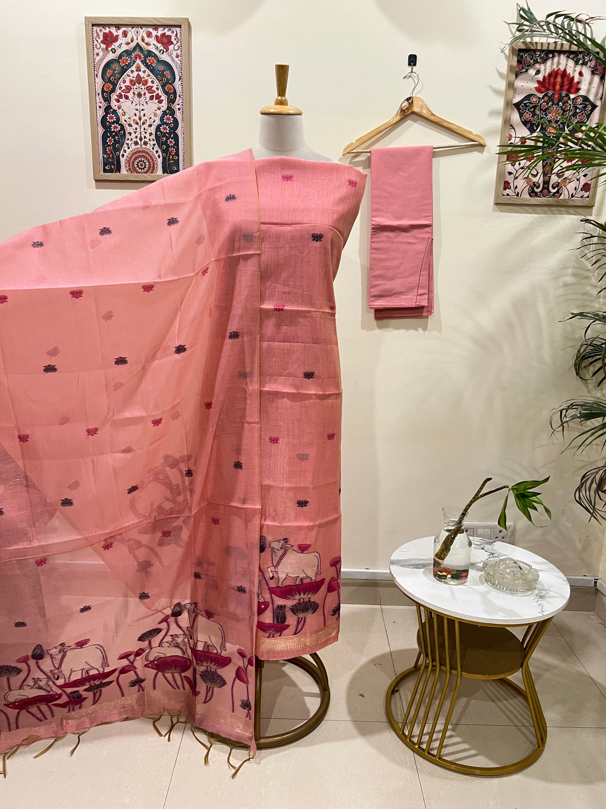 Kurta - Pure Slub Chanderi Jamdani Pichwai Print Kurta (2.5Mtr)