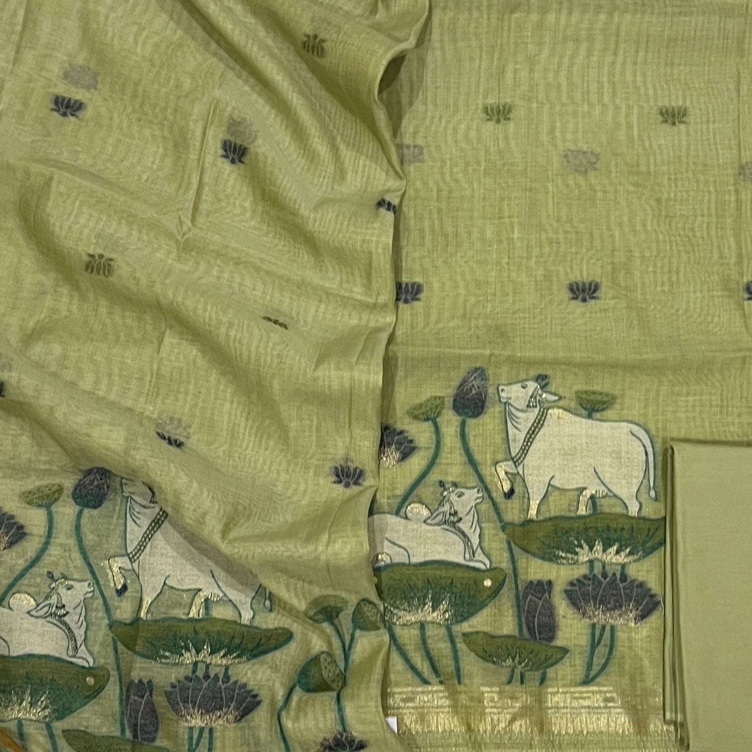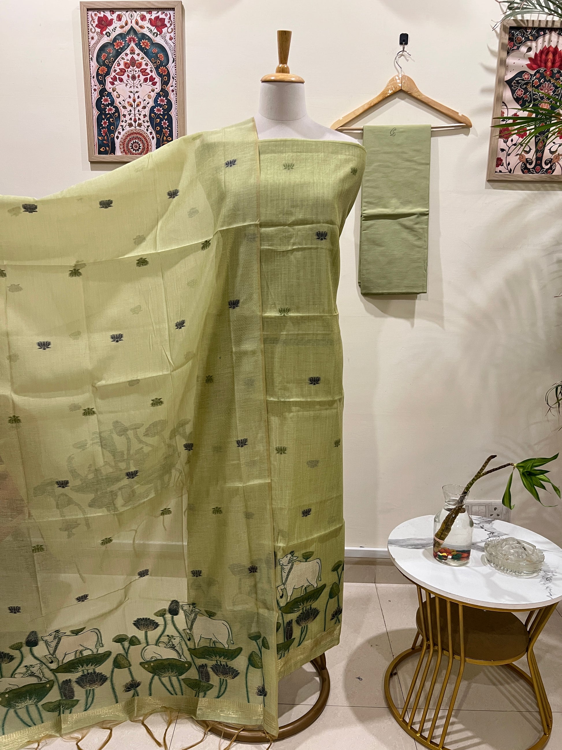 Kurta - Pure Slub Chanderi Jamdani Pichwai Print Kurta (2.5Mtr)