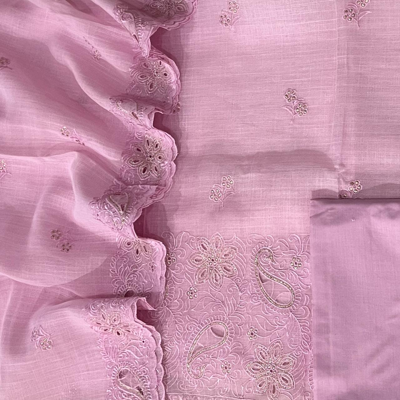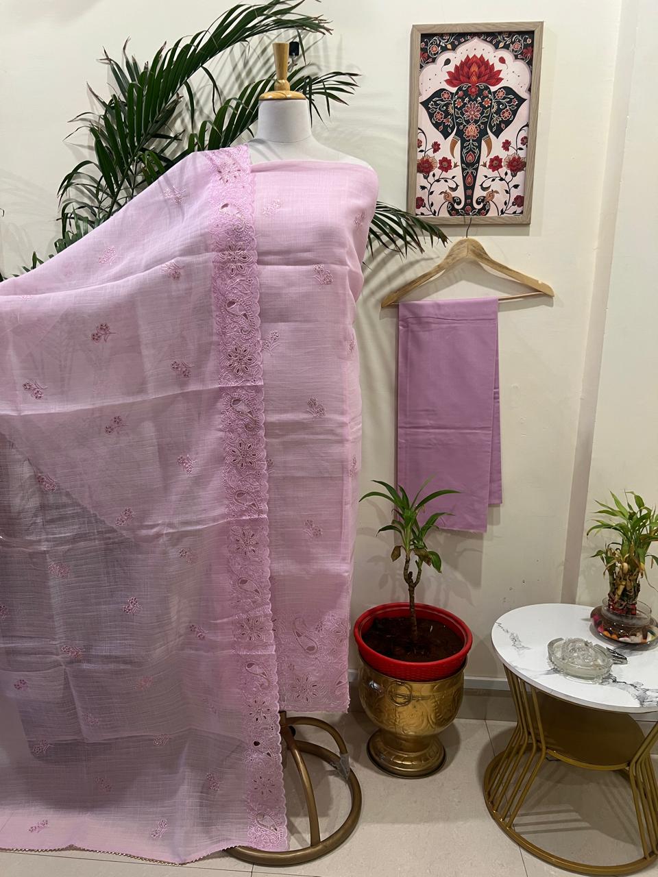 • Kurta: Kota Checks Cutwork Embroidery Kurta (2.5 Mtr)