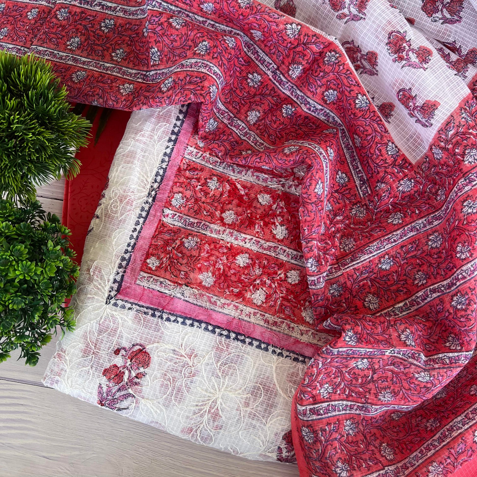 Dupatta - Kota Doriya Block Print Dupatta (2.5Mtr)
