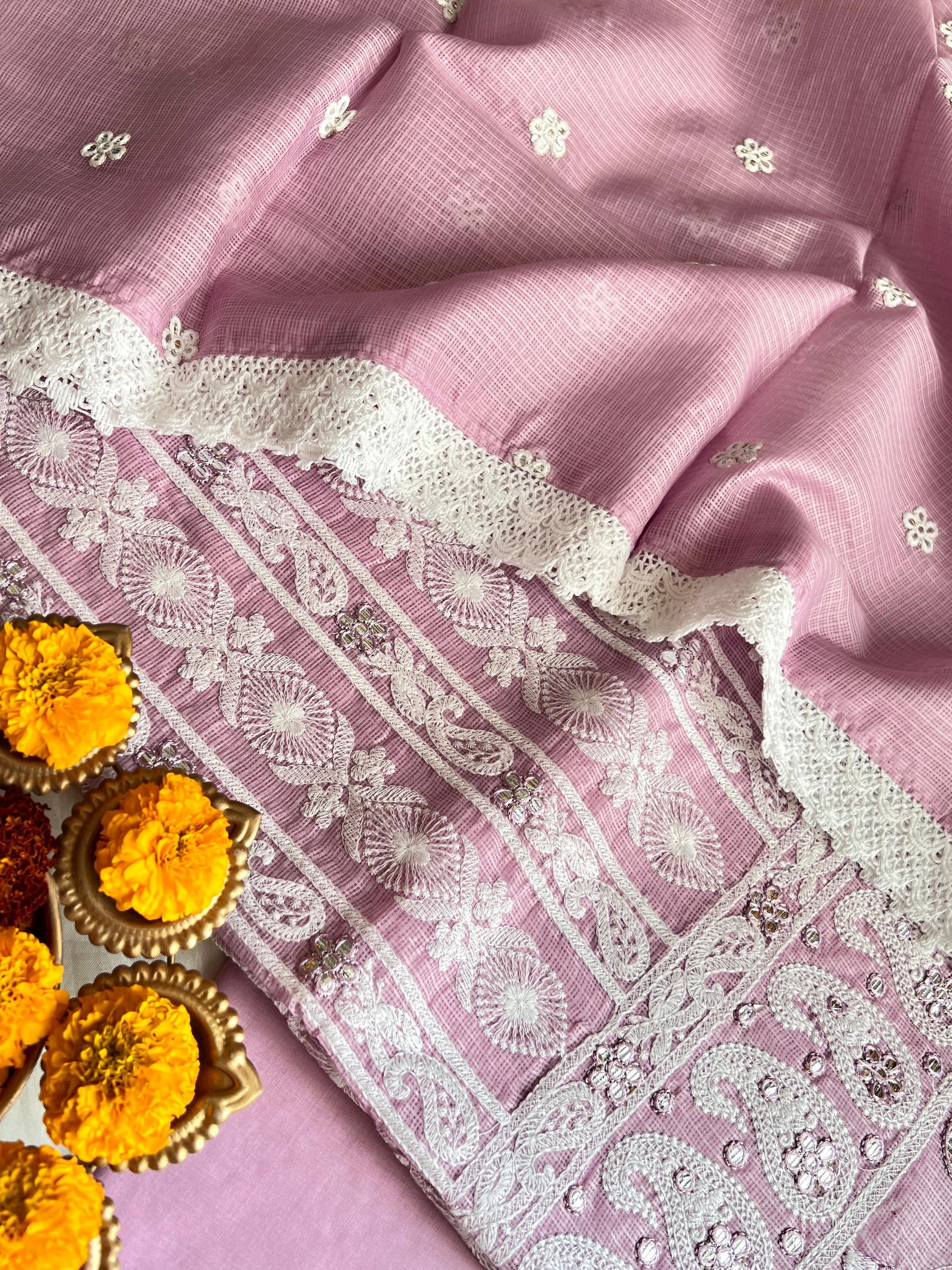 Kurta - Kota Doriya Full Embroidery Kurta With Crochet Border At Daman (2.5Mtr)