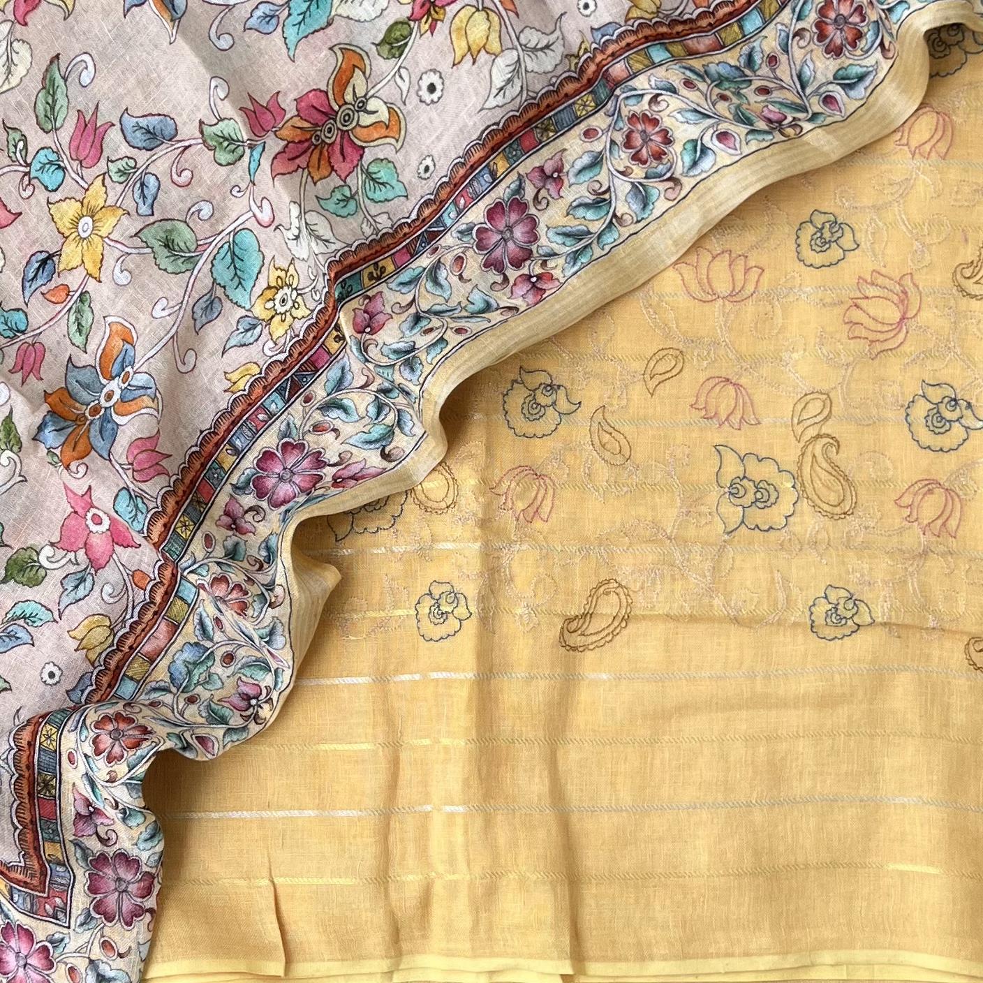 Dupatta - Pure Linen Kalamkari Print Dupatta (2.5Mtr)