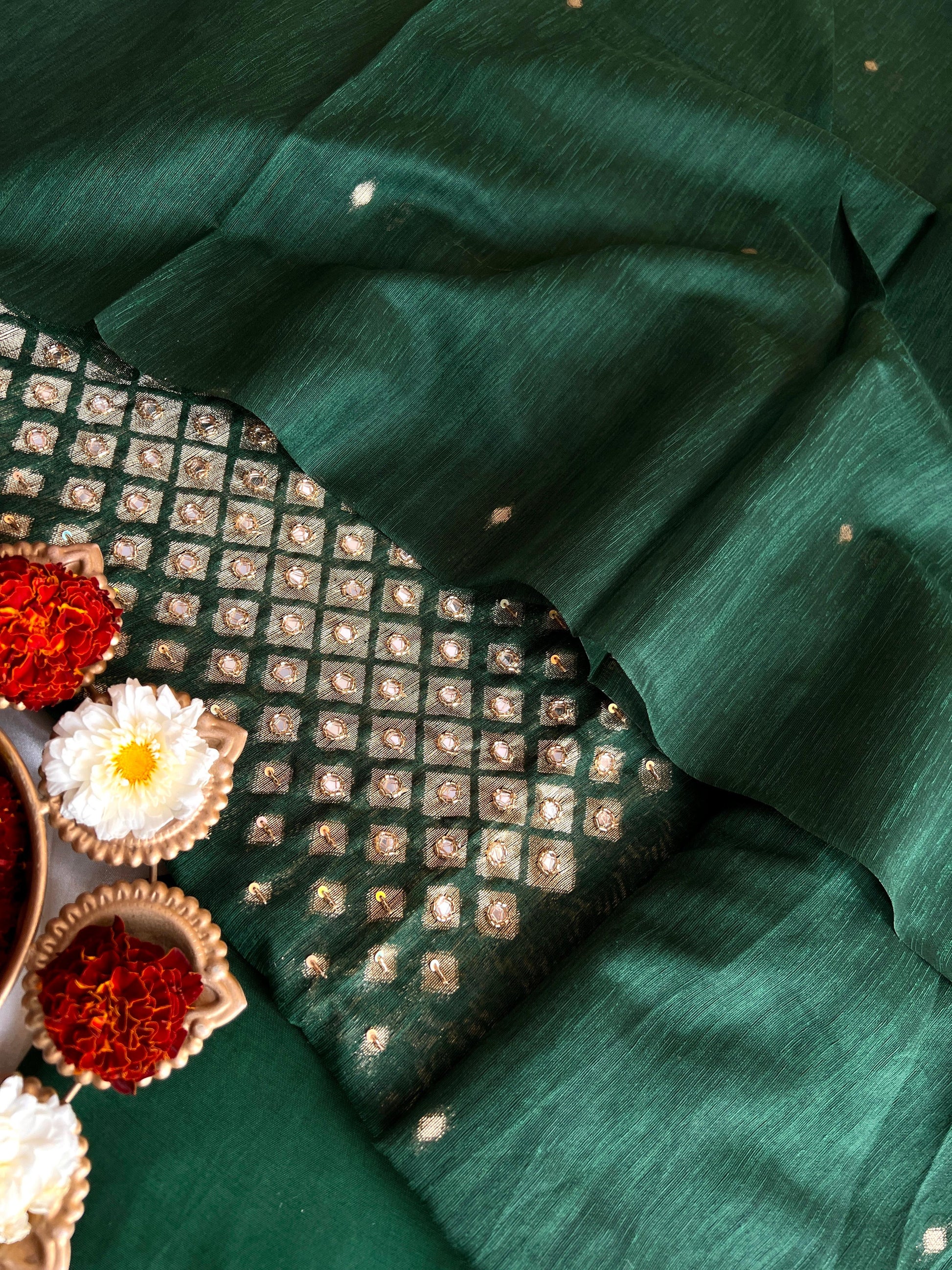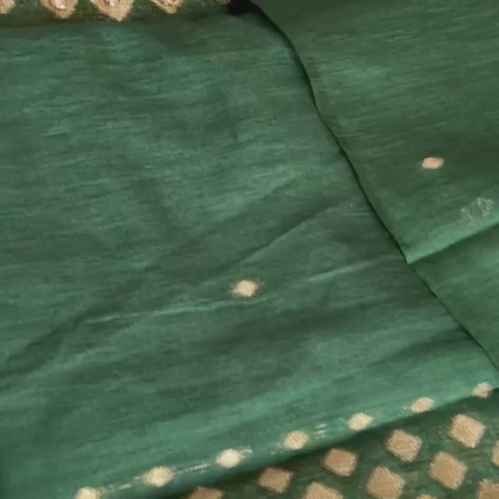 Dupatta - Fine Linen Jamdani Weaved Dupatta With Handmade Tussles (2.5Mtr)