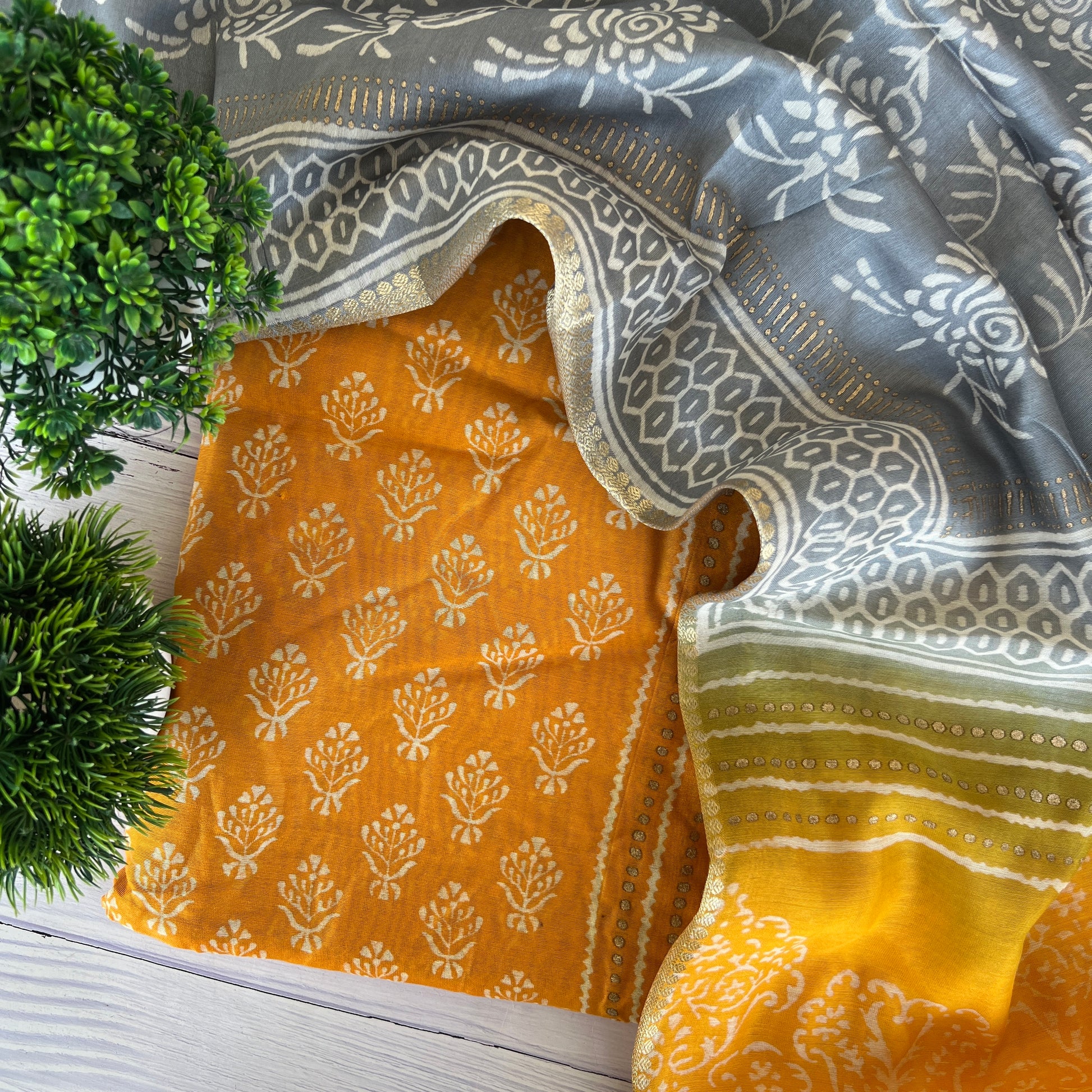 Dupatta - Pure Maheshwari Silk Dabu Print Dupatta With Zari Border (2.5Mtr)