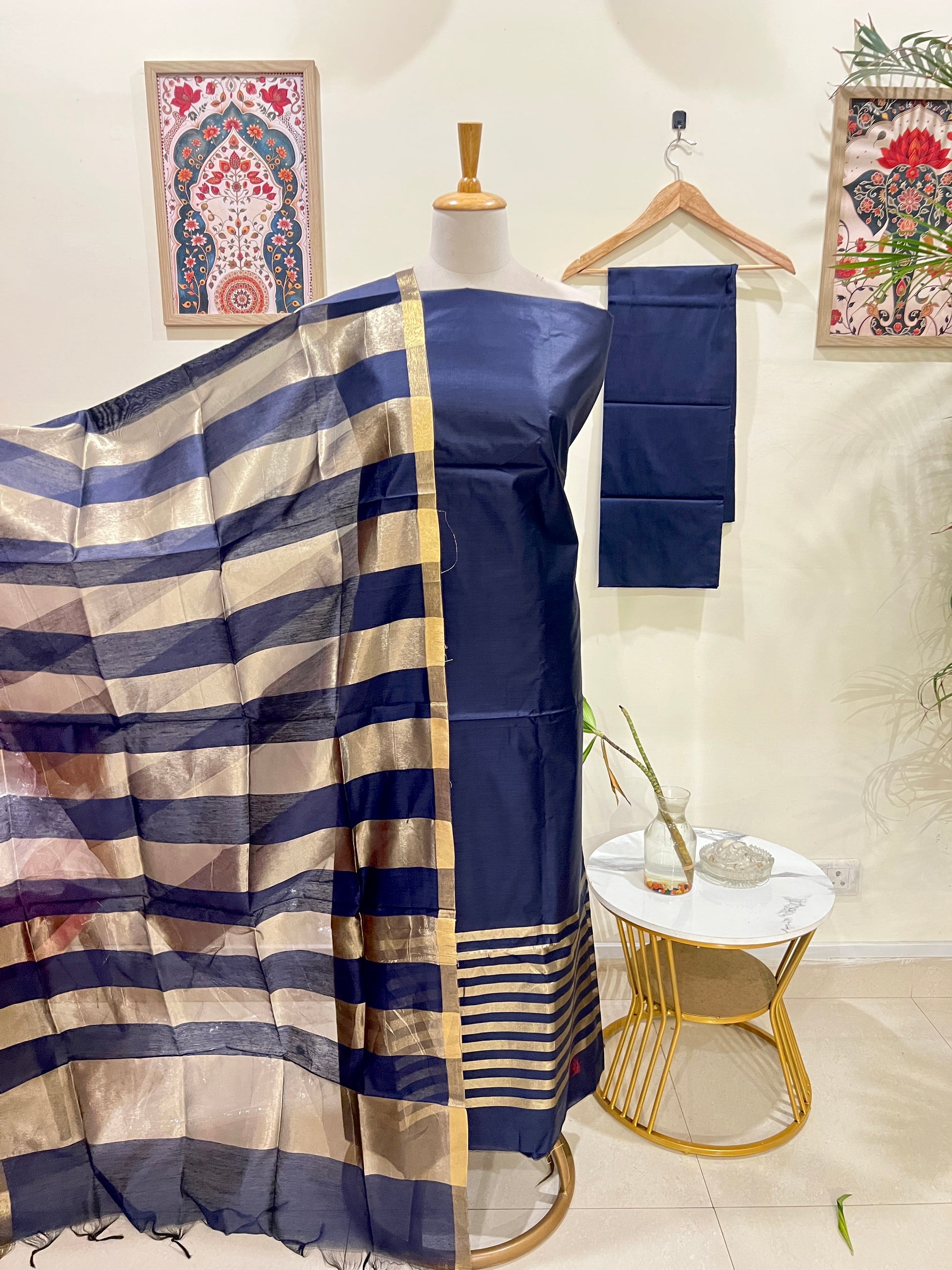 Kurta - Fine Soft Malai Chanderi Kurta With Golden Tissue Woven Border At Daman (2.5Mtr)