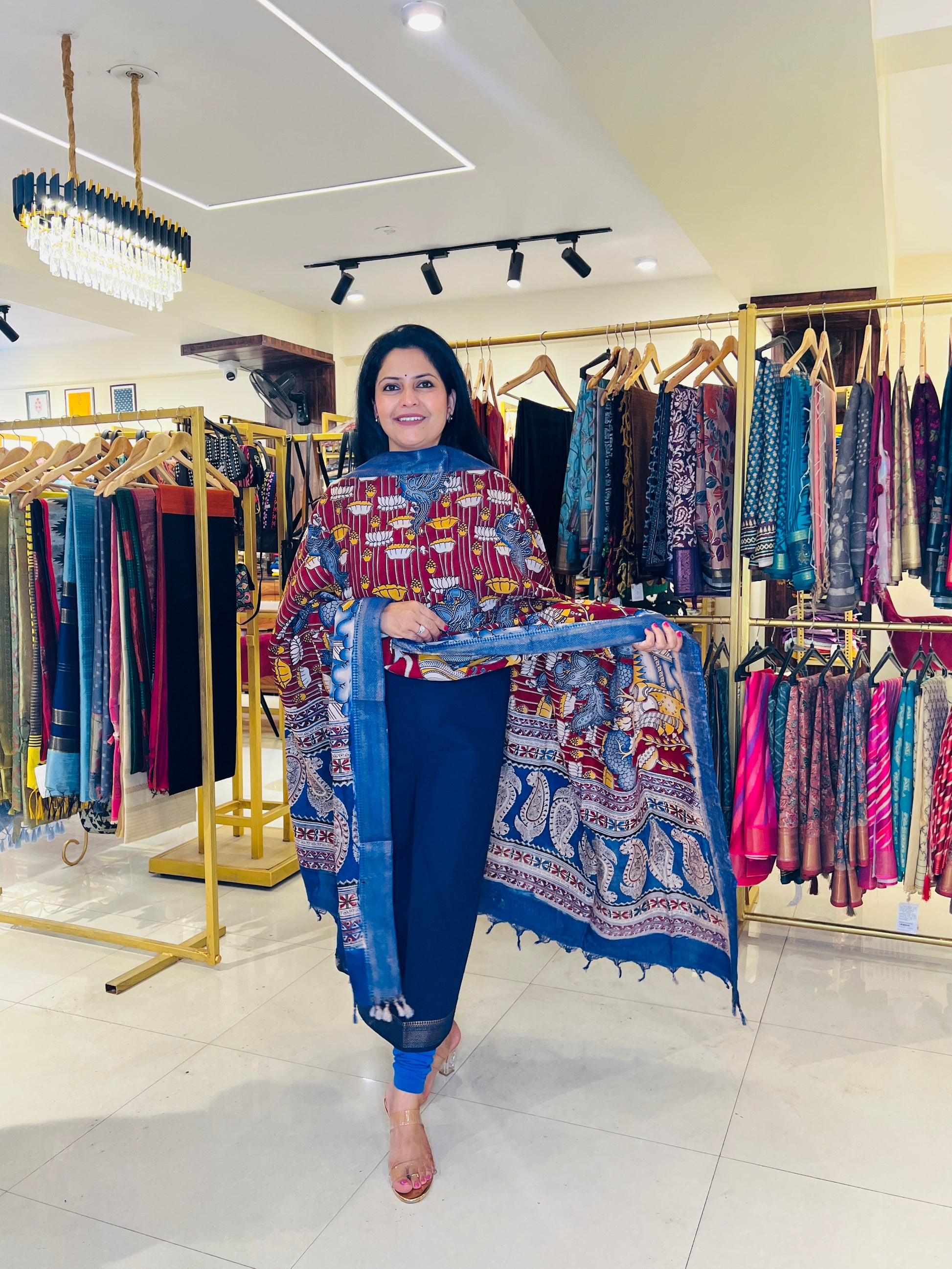 Dupatta - Bangalori Silk Zari Border Kalamkari Dupatta (2.5mtr)