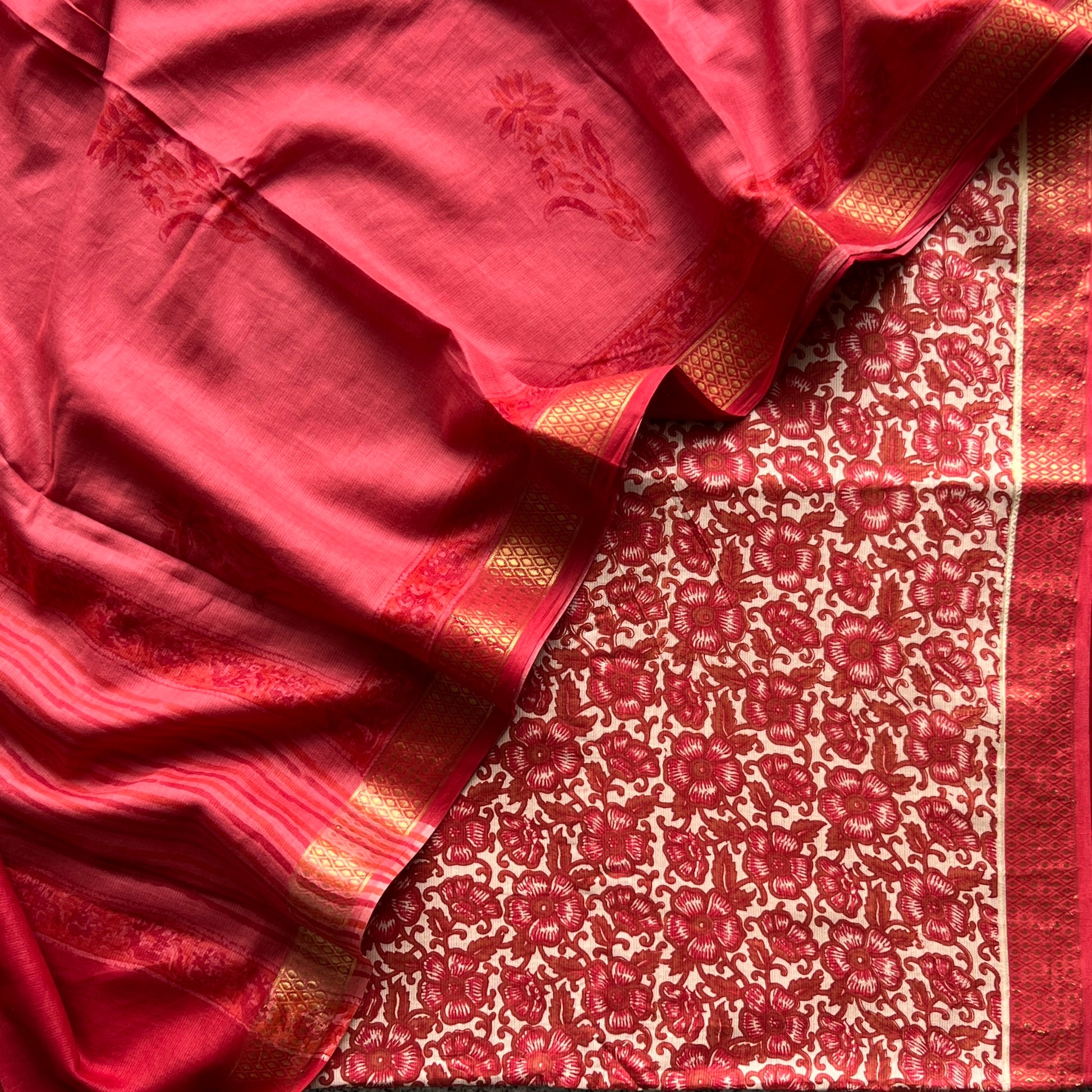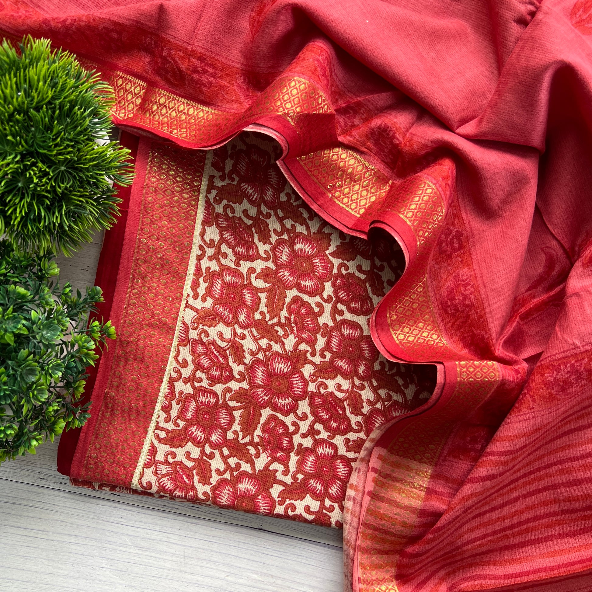 Dupatta - Pure Cotton Handblock Dupatta With Temple Border (2.5Mtr)