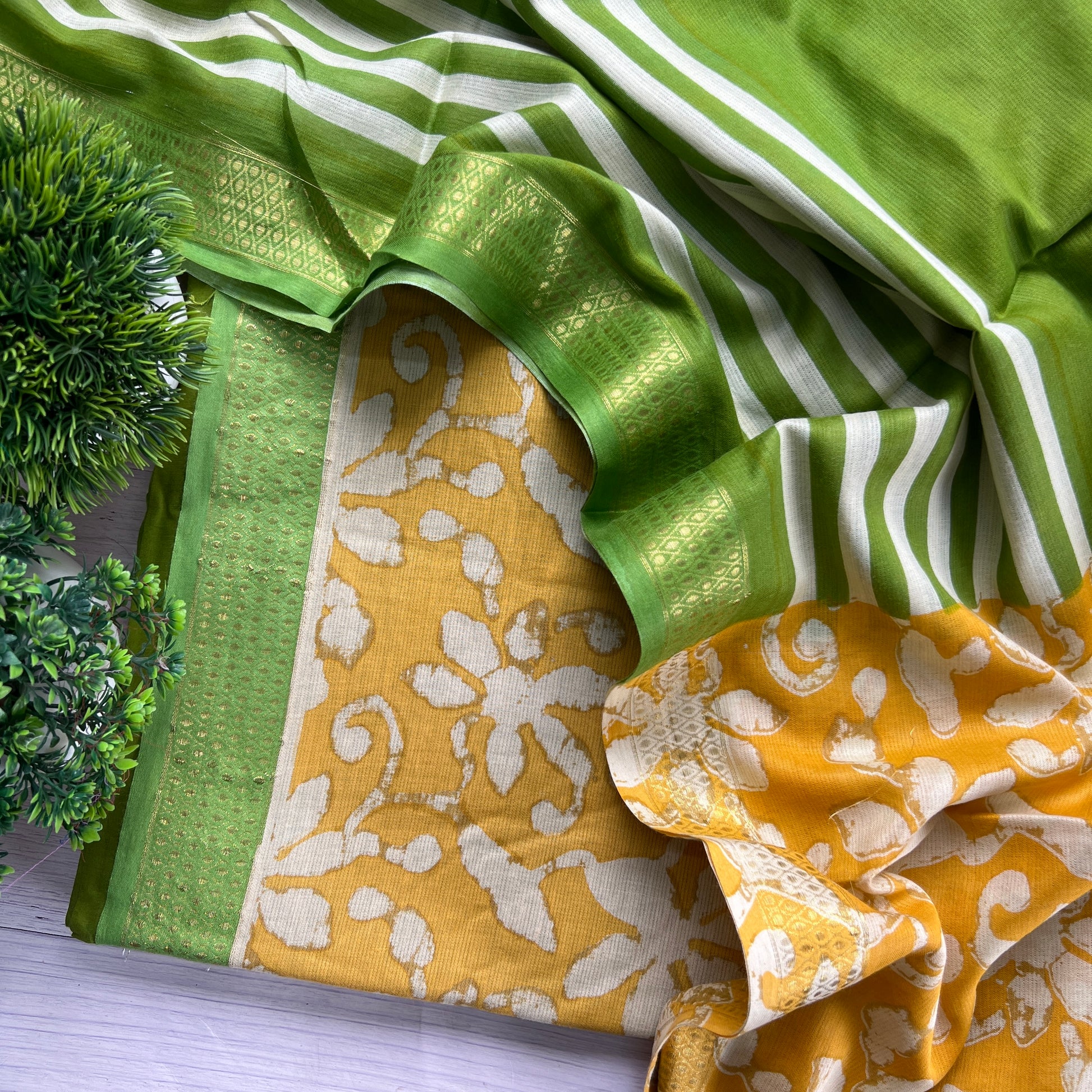 Kurta - Pure Cotton HandBlock Kurta With Temple Border (2.5Mtr)