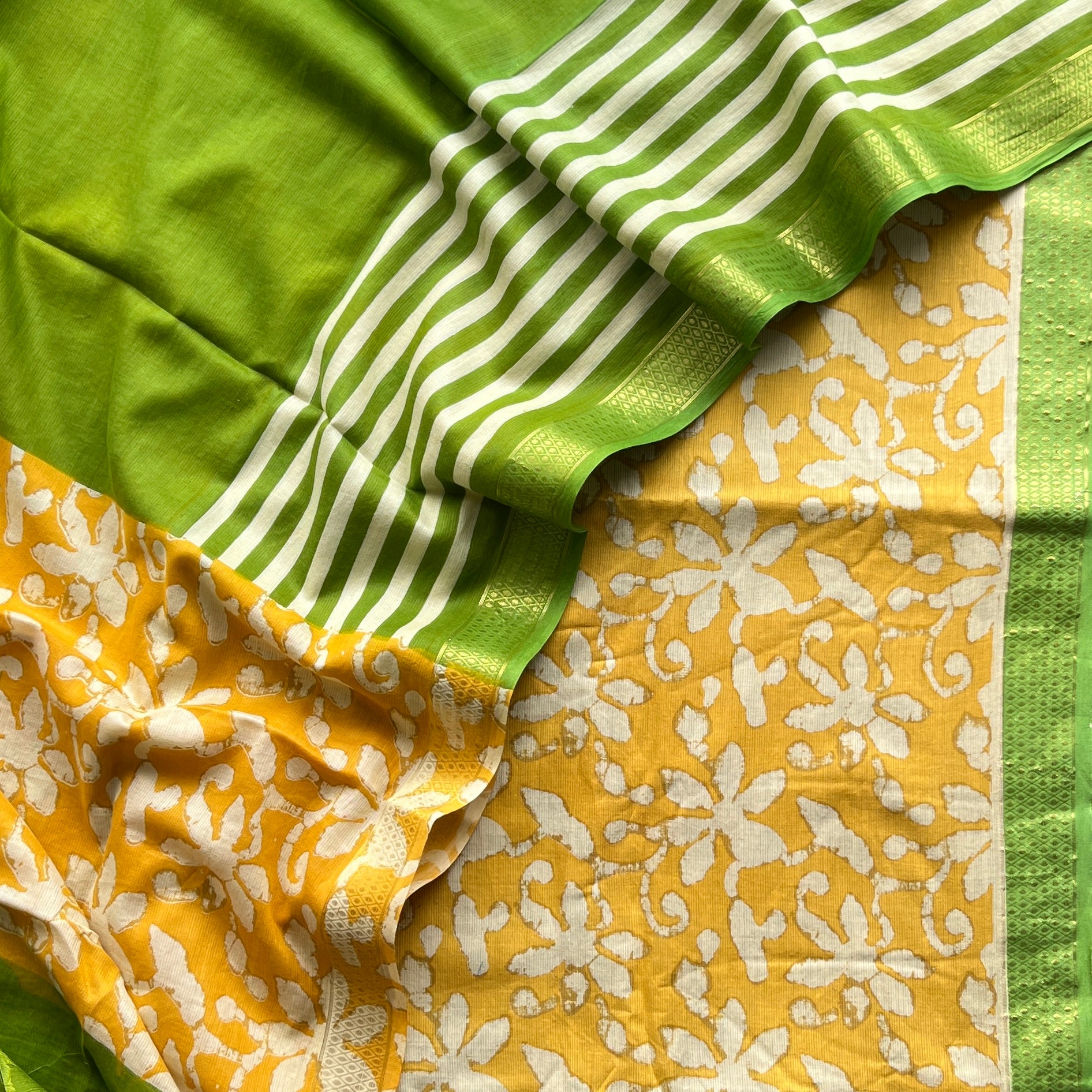 Dupatta - Pure Cotton Handblock Dupatta With Temple Border (2.5Mtr)