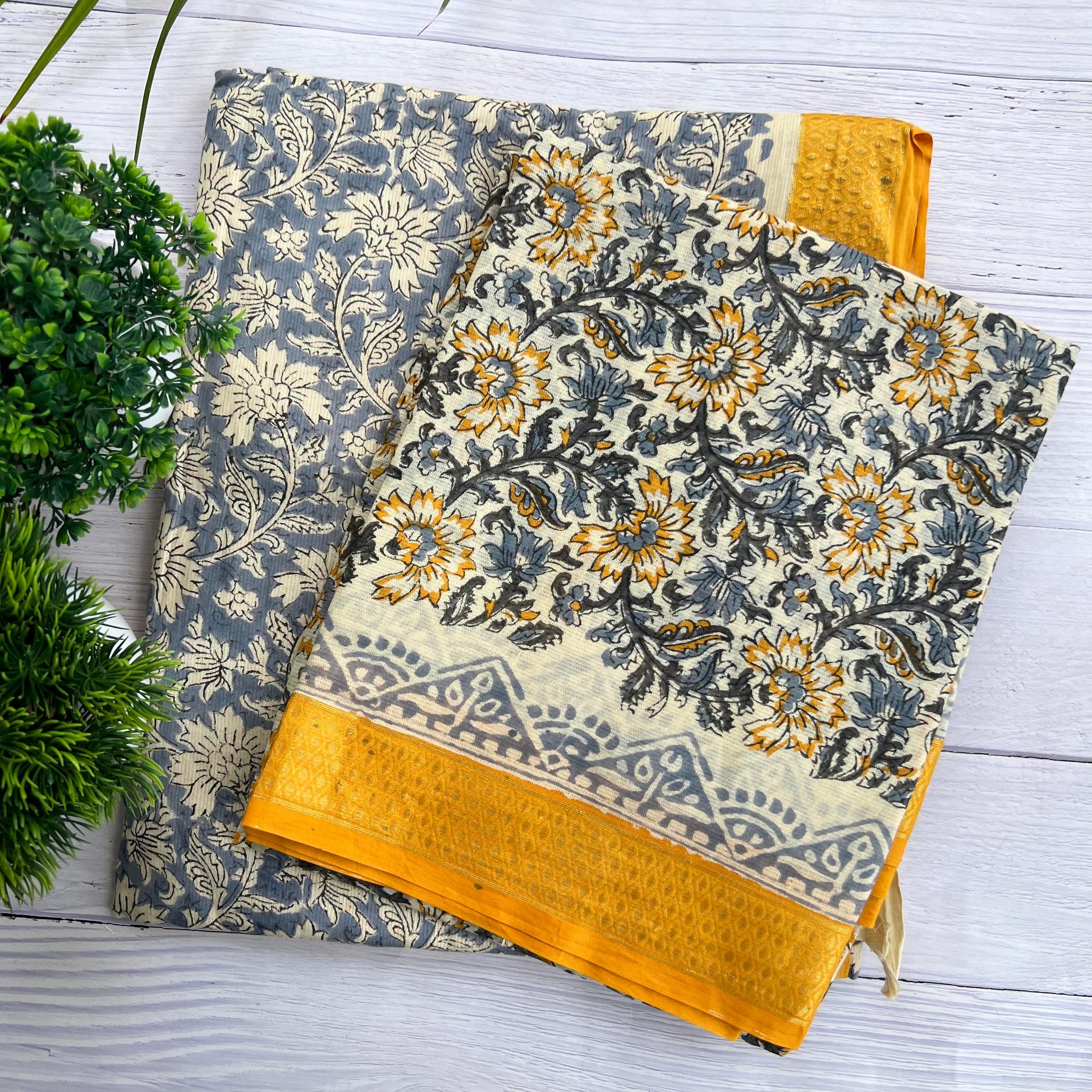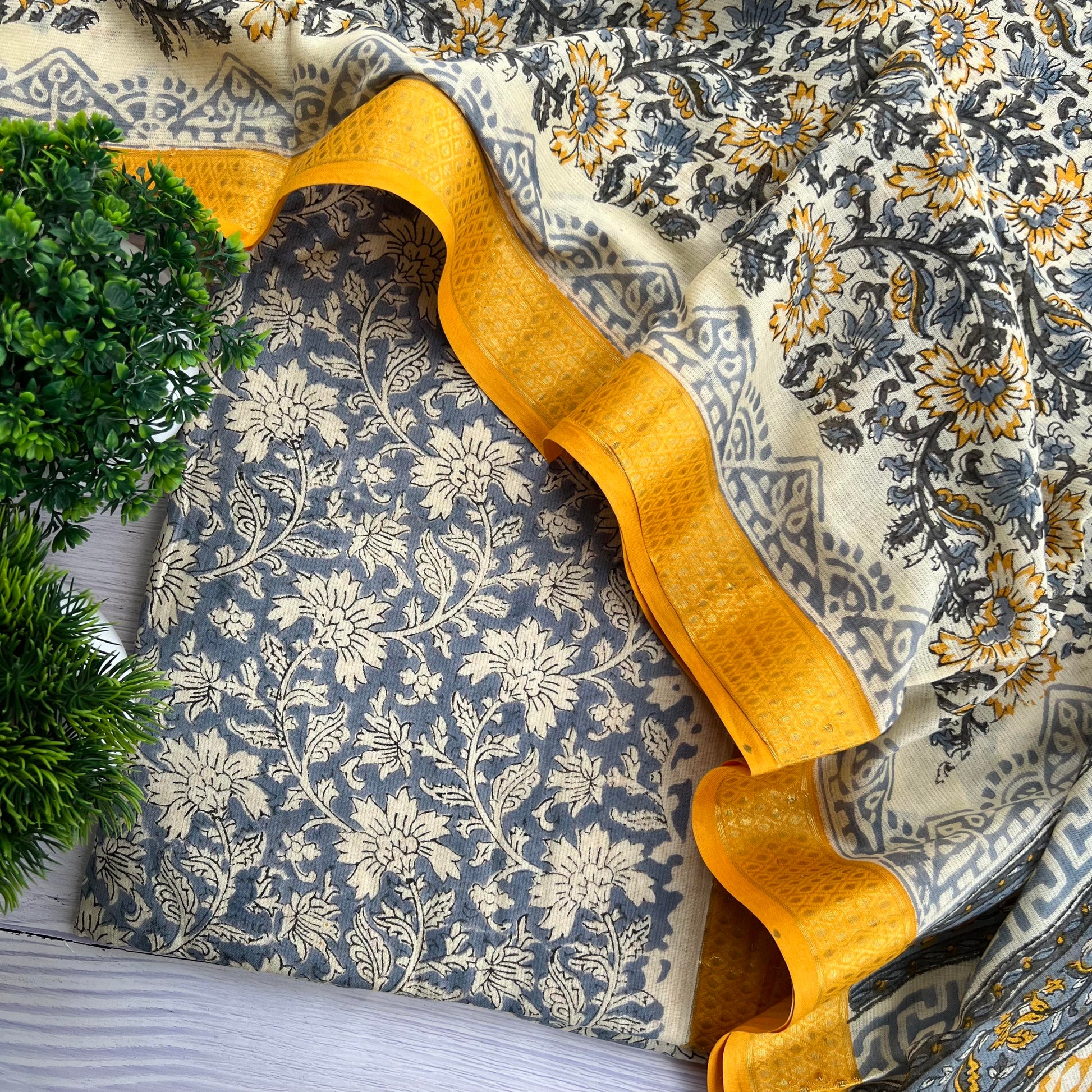 Kurta - Pure Cotton HandBlock Kurta With Temple Border (2.5Mtr)