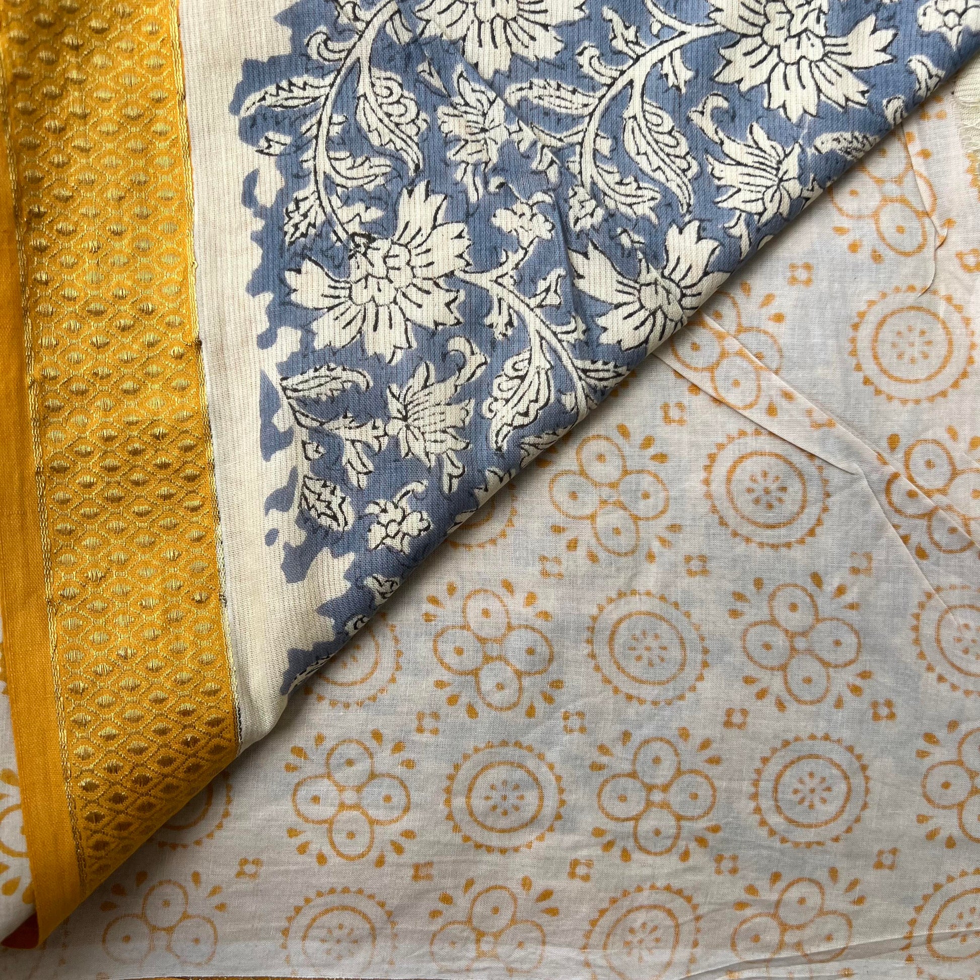Dupatta - Pure Cotton Handblock Dupatta With Temple Border (2.5Mtr)