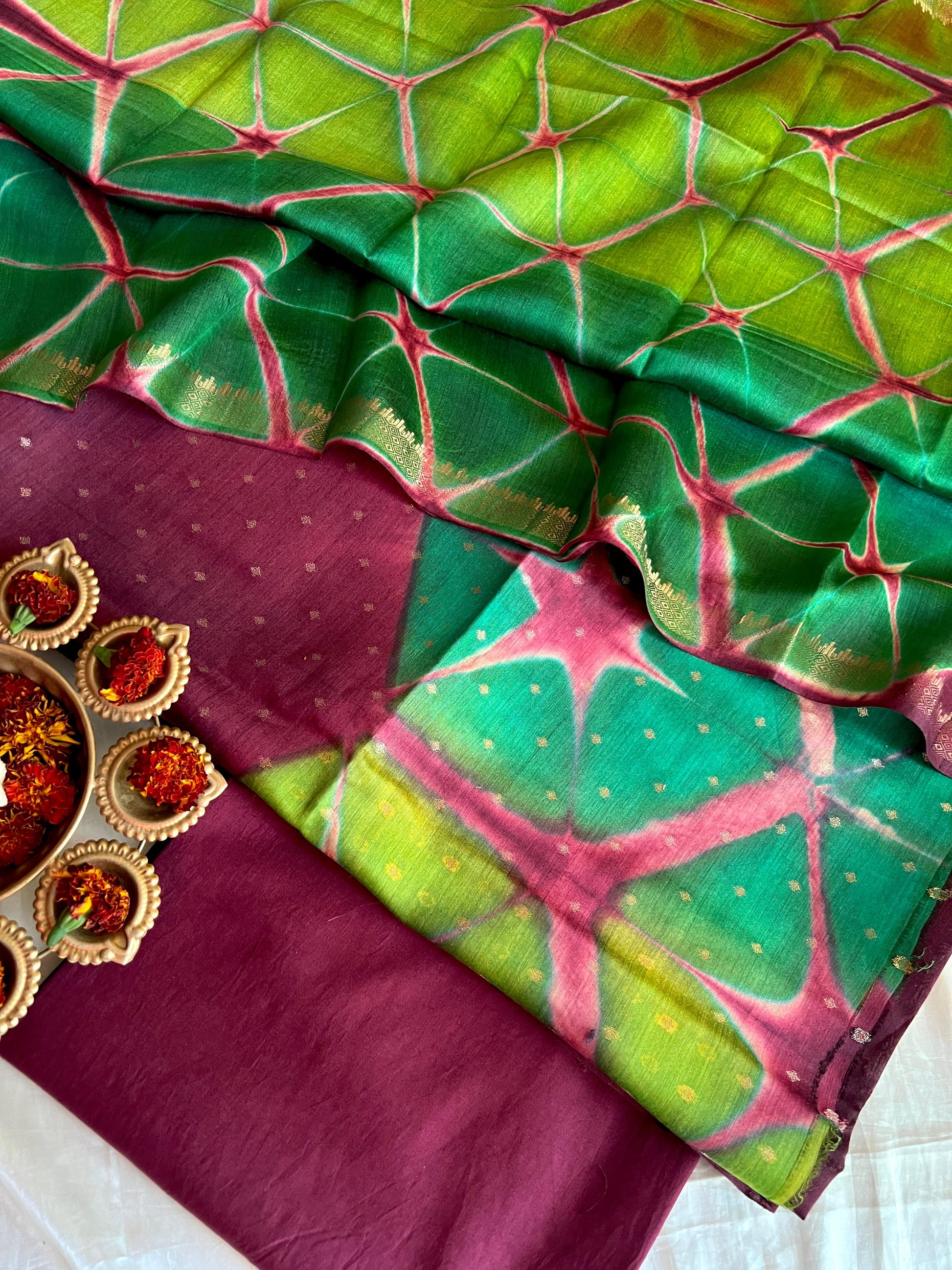 Kurta - Pure Munga Tussar Weave Zari Butti Clamp Dye Kurta (2.5Mtr)