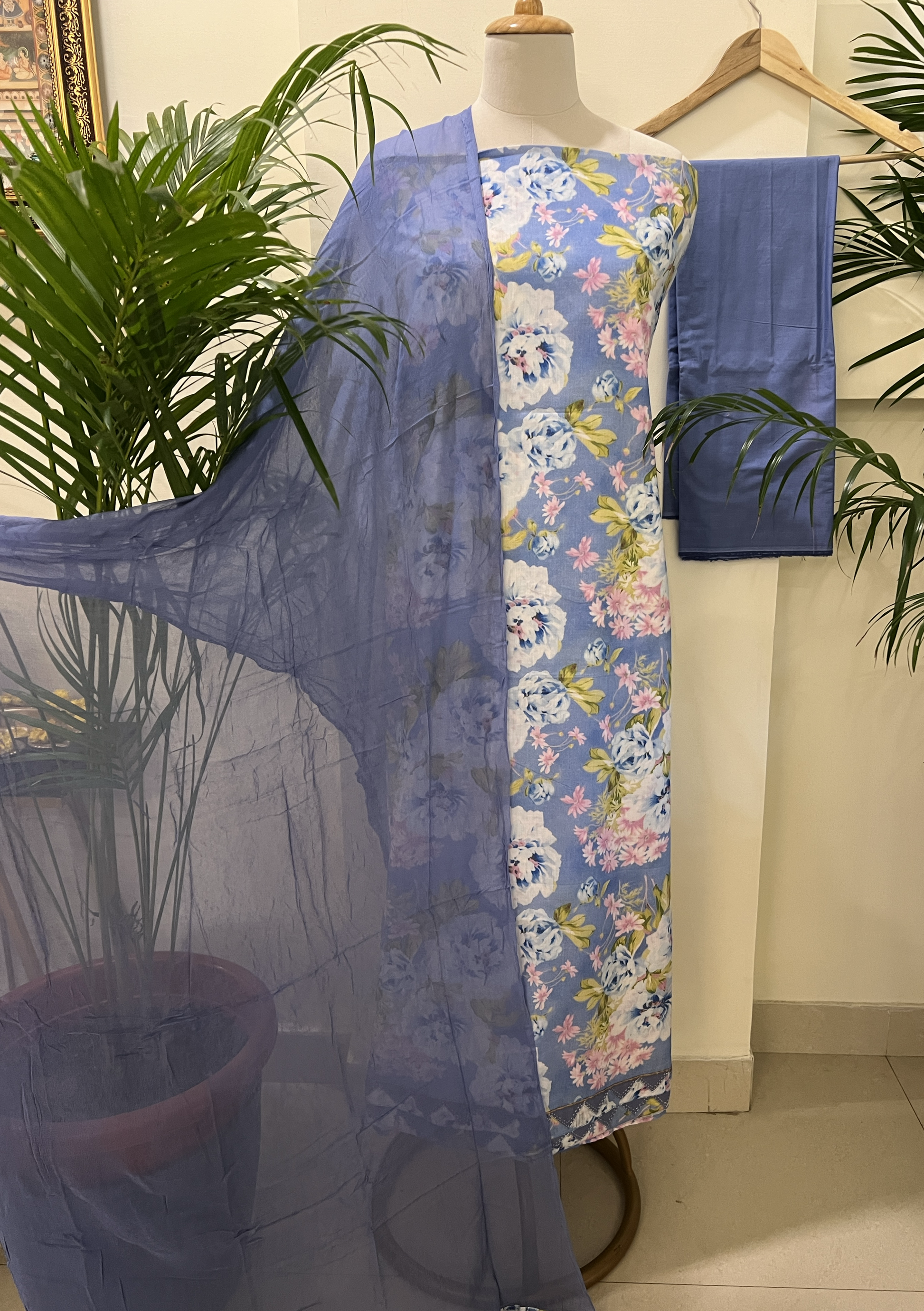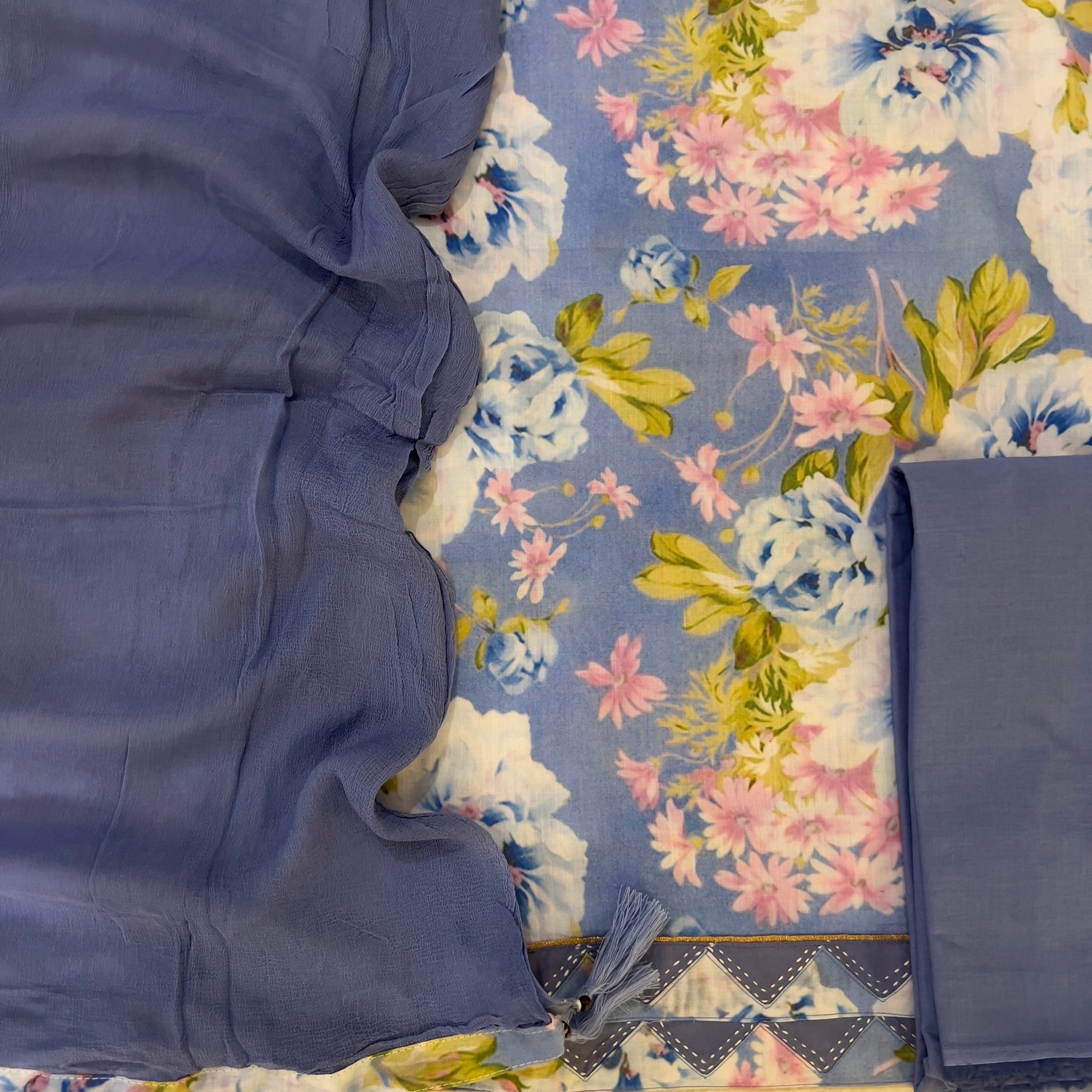 Kurta - Pure Muslin Printed Embroidered Kurta (2.5Mtr)