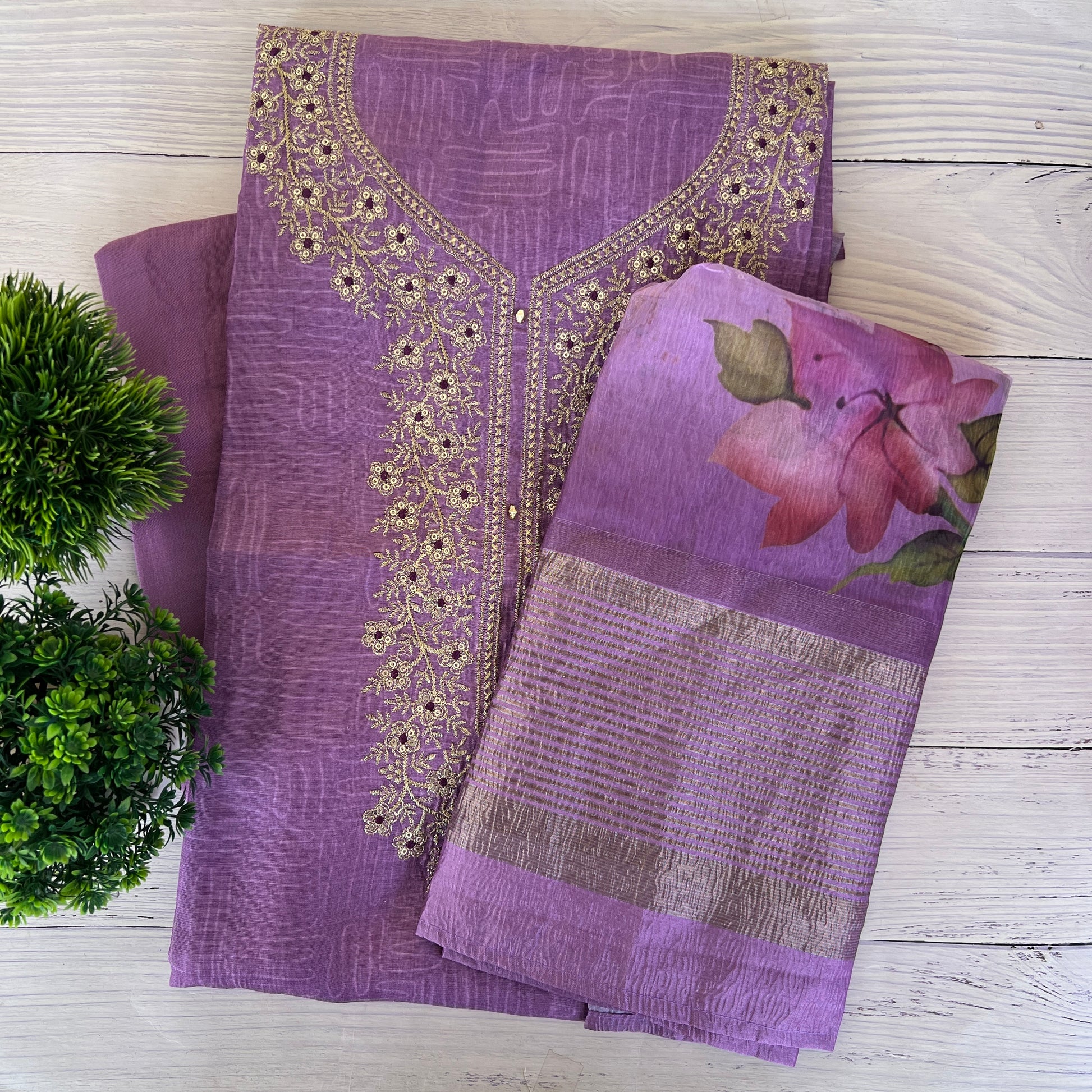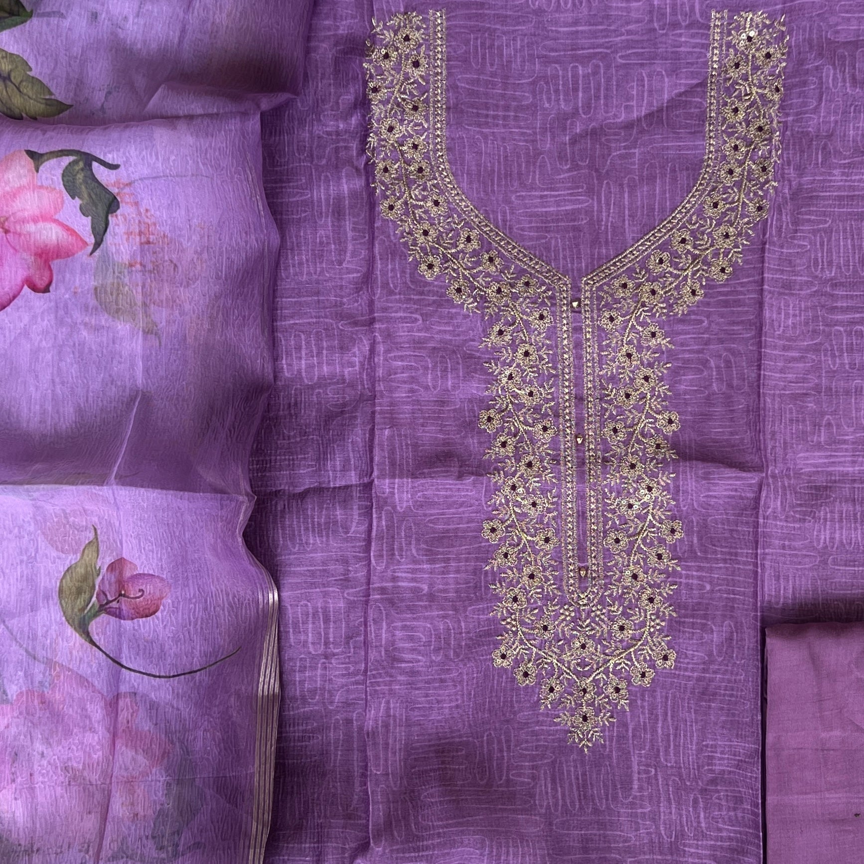 Kurta - Pure Organza Self Print Embroidery Kurta (2.5Mtr)