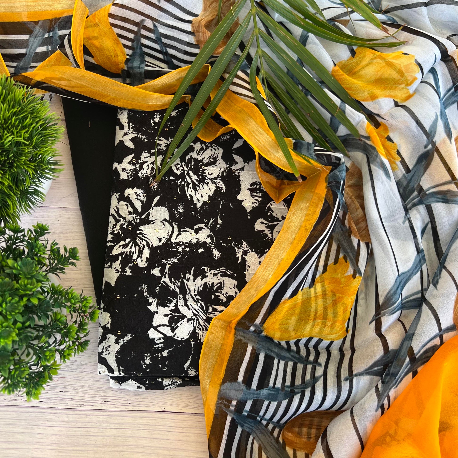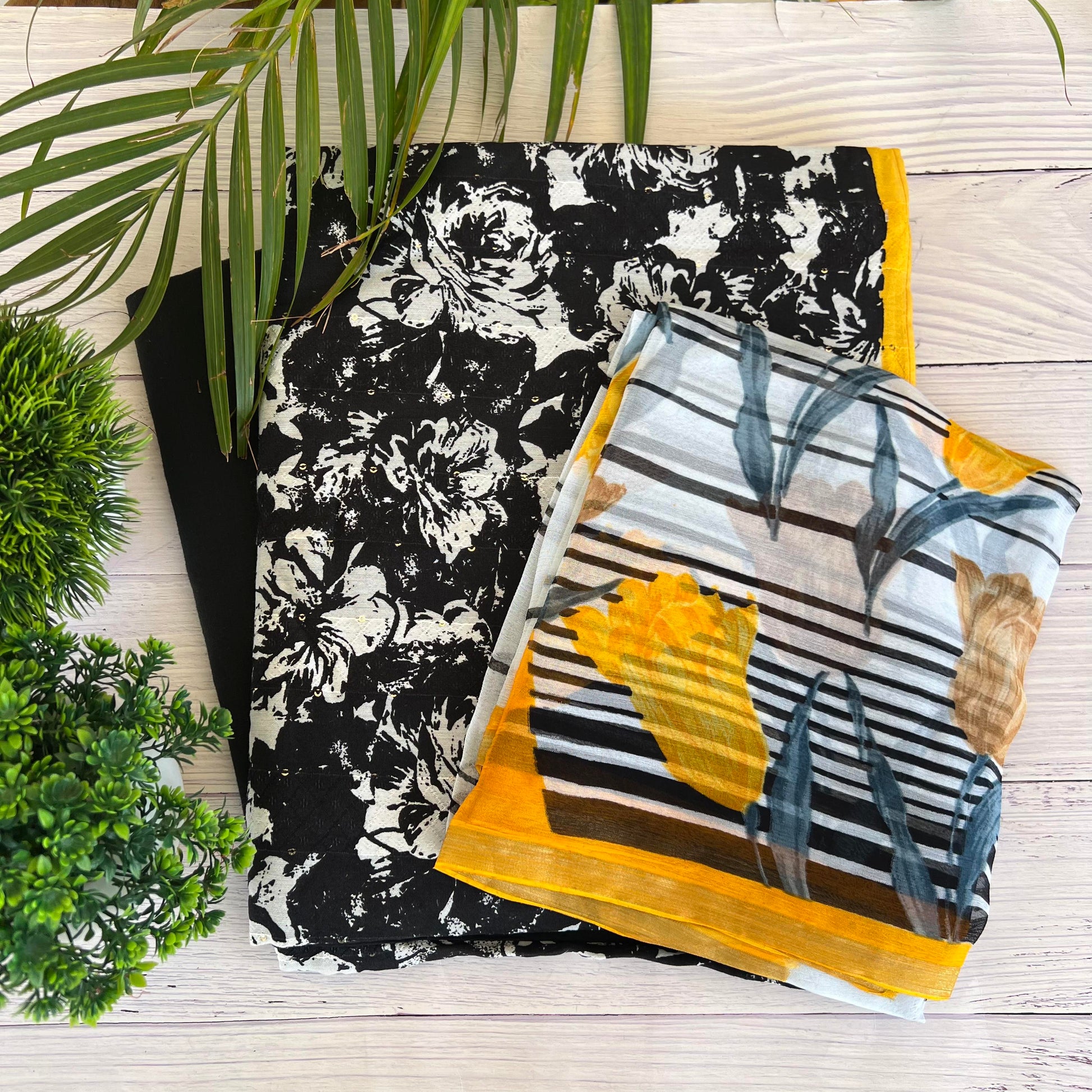 Dupatta - Pure Chiffon Floral Print Dupatta (2.5Mtr)