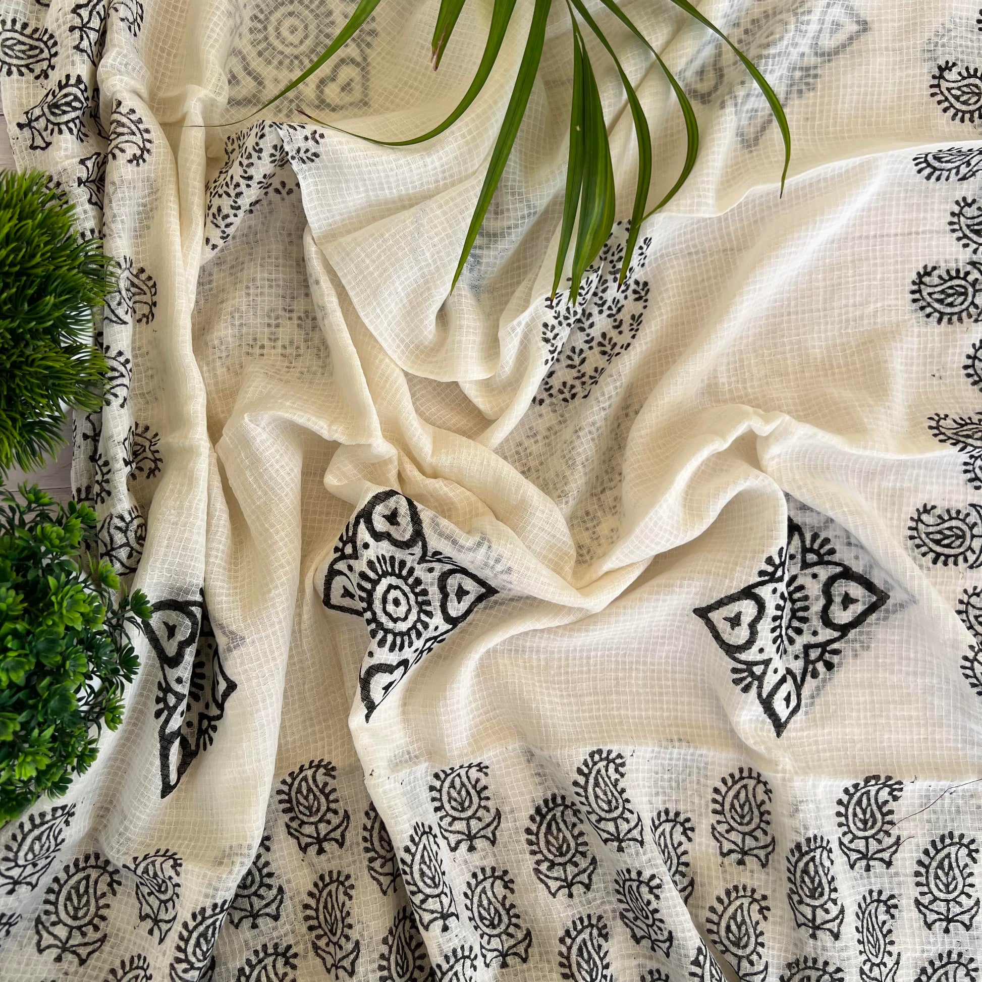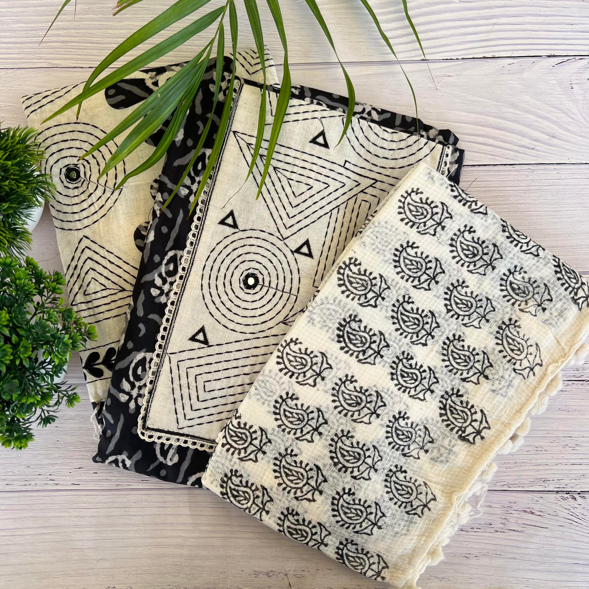 Dupatta - Kota Checks Tussles Block Print & Applique Work Dupatta (2.5Mtr)