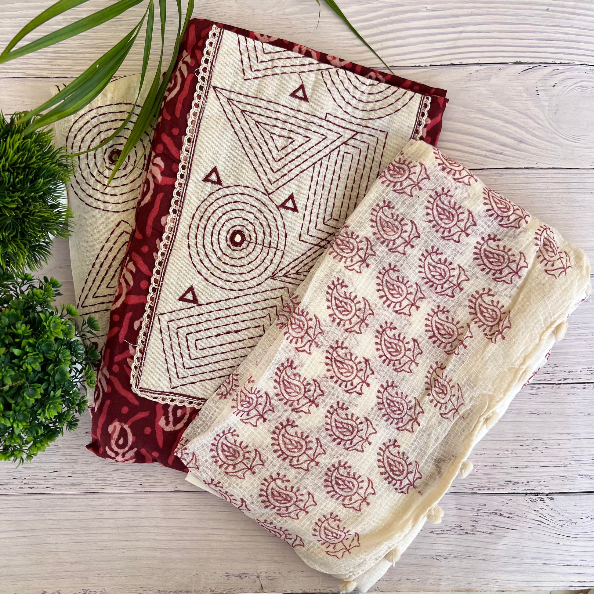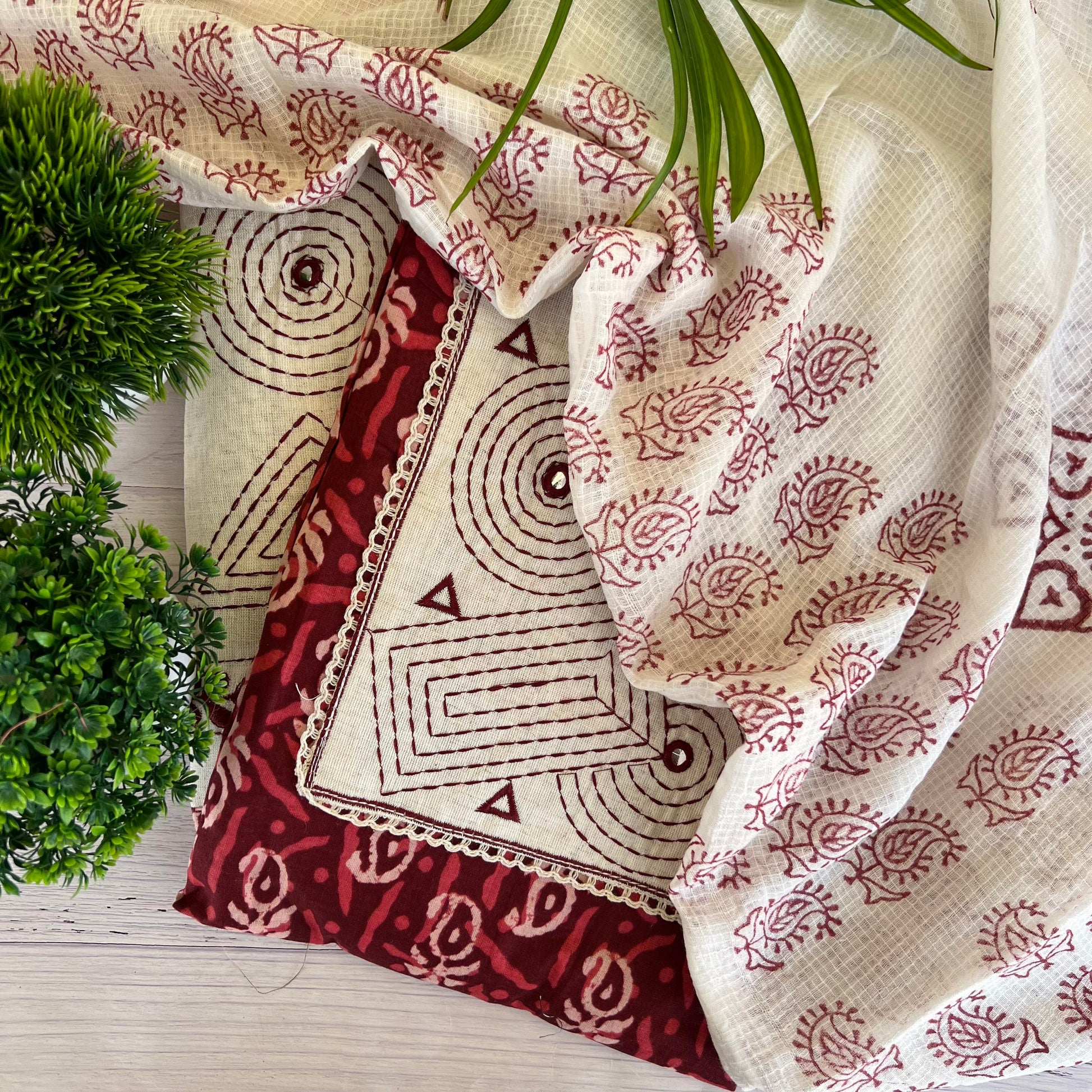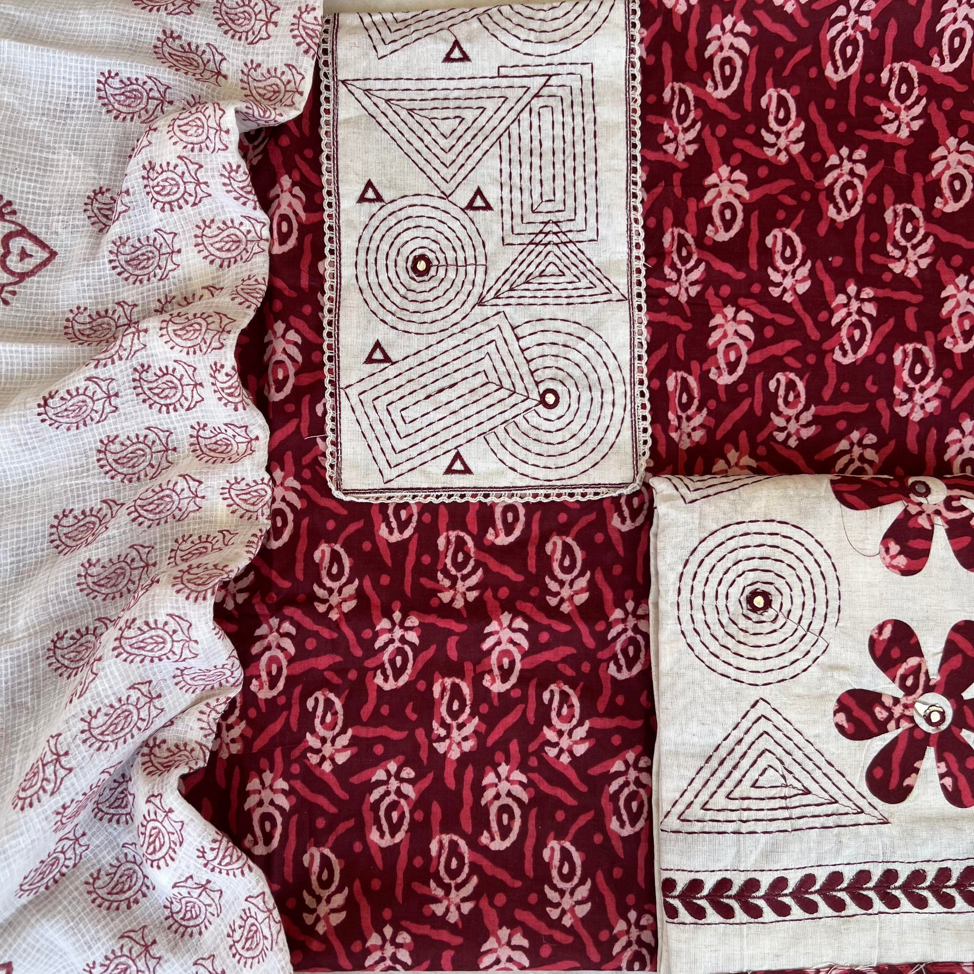 Kurta - Pure Cotton Dabu Block Print Kurta With Kantha Patch Work (2.5Mtr)