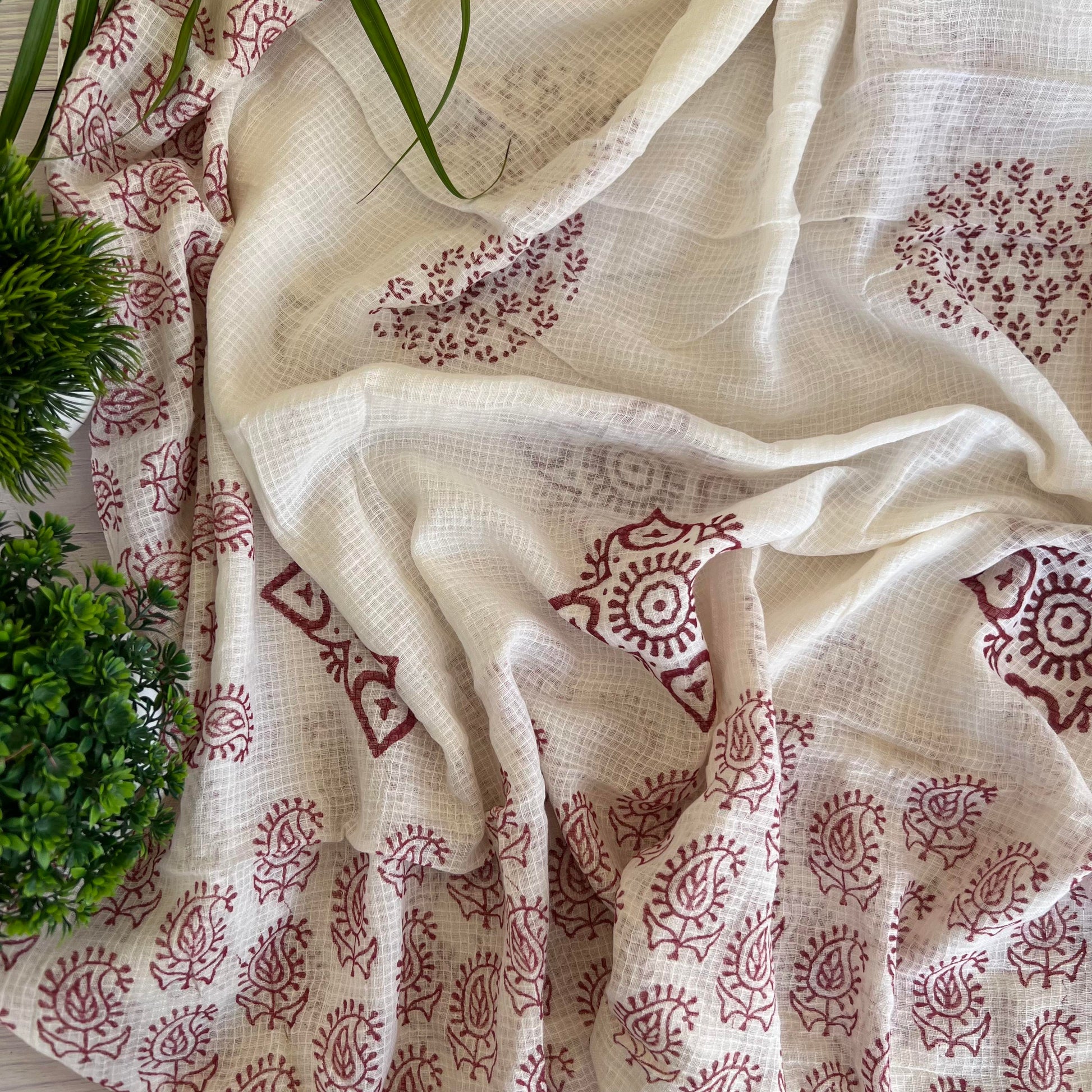 Dupatta - Kota Checks Tussles Block Print & Applique Work Dupatta (2.5Mtr)
