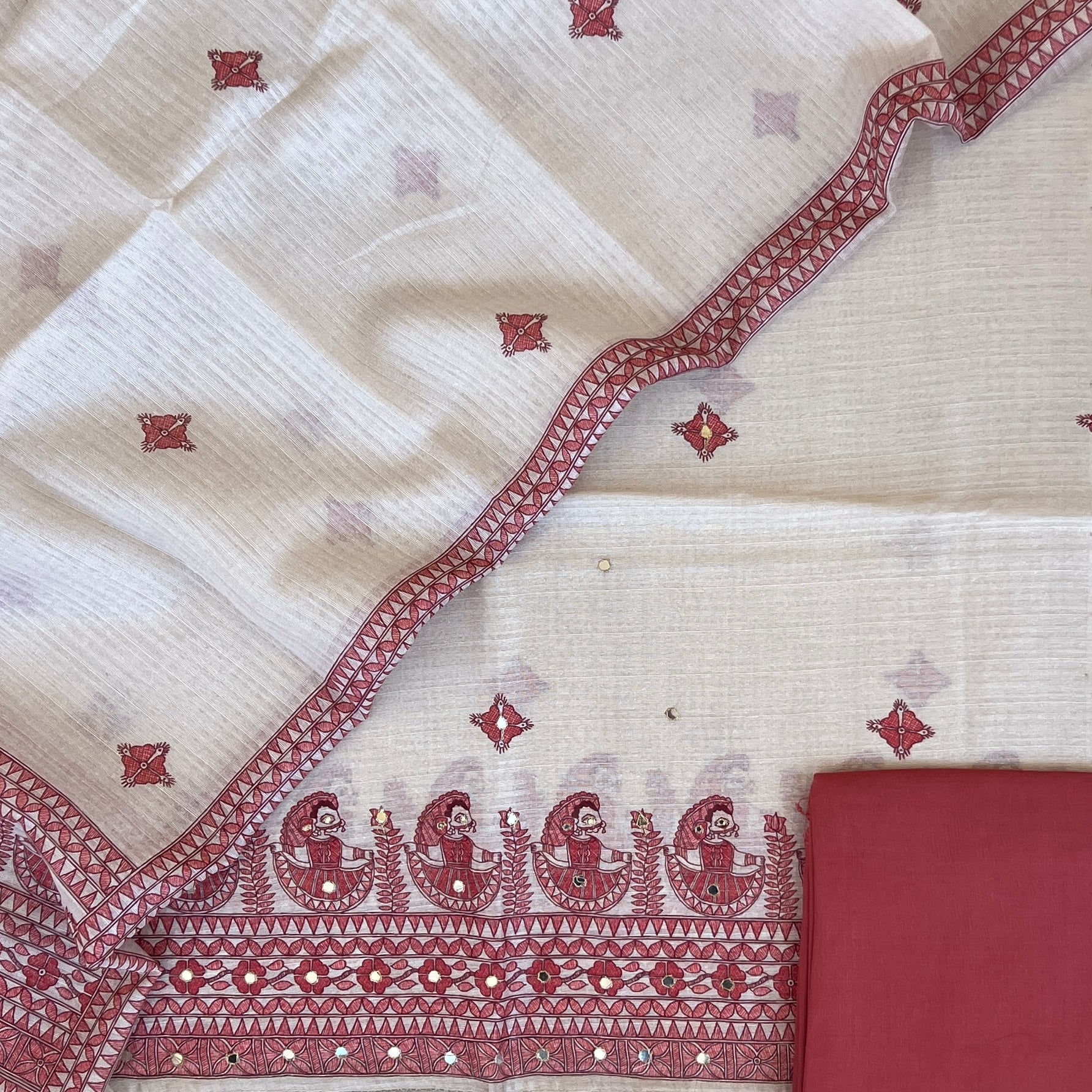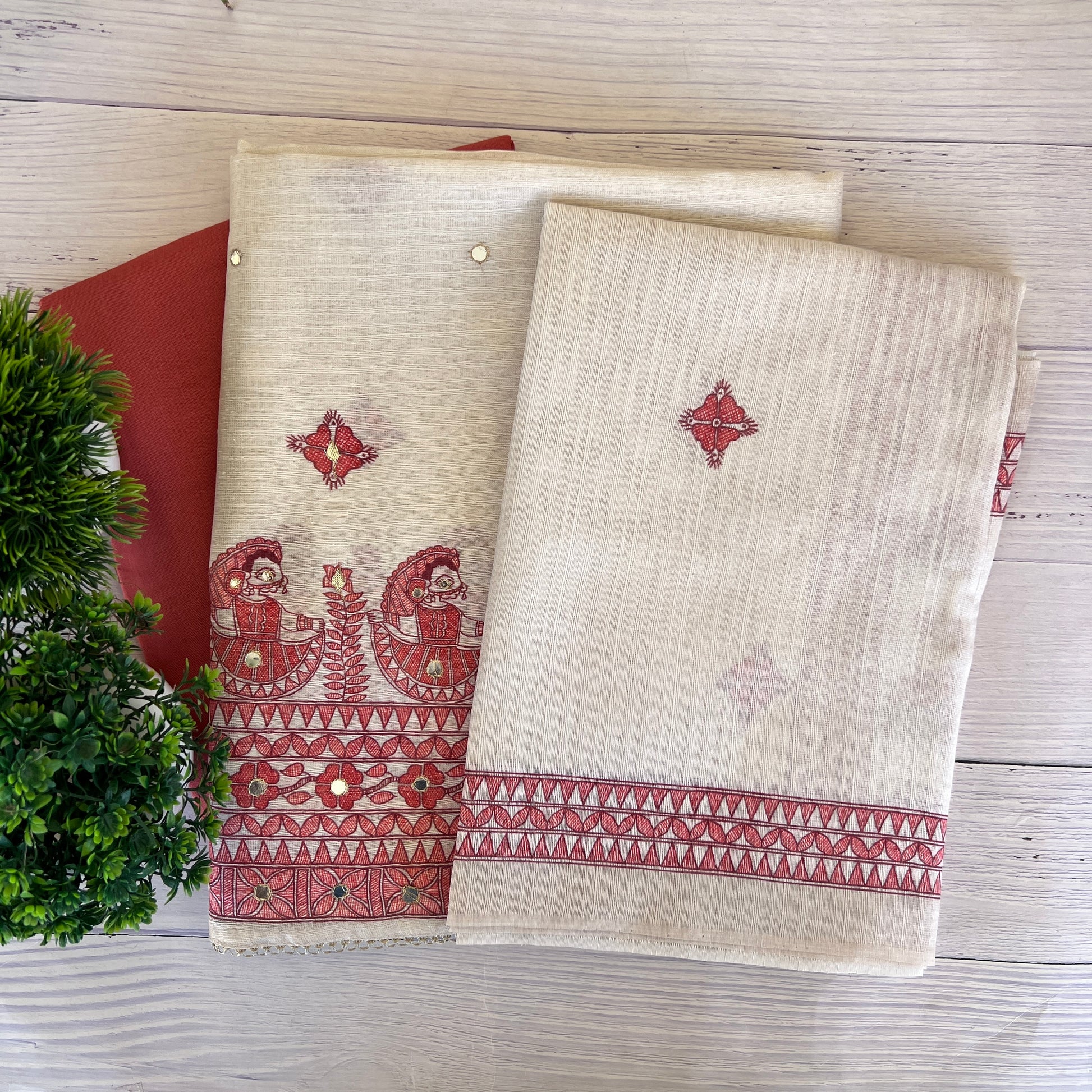 Kurta - Soft Fine Semi Geecha Tusser Printed Embroidered Kurta (2.5Mtr)