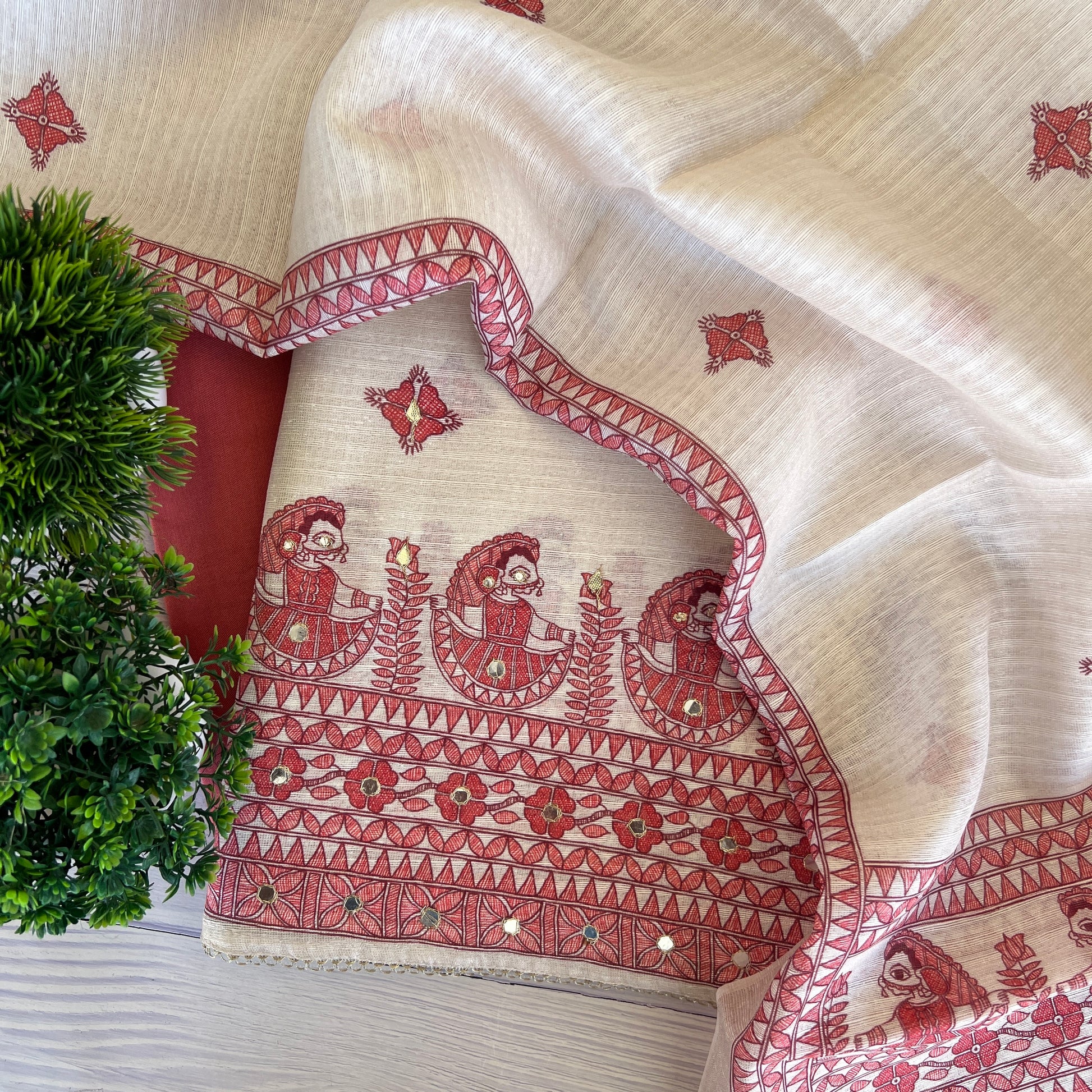 Dupatta - Soft Semi Geecha Tusser Printed Dupatta (2.5Mtr)
