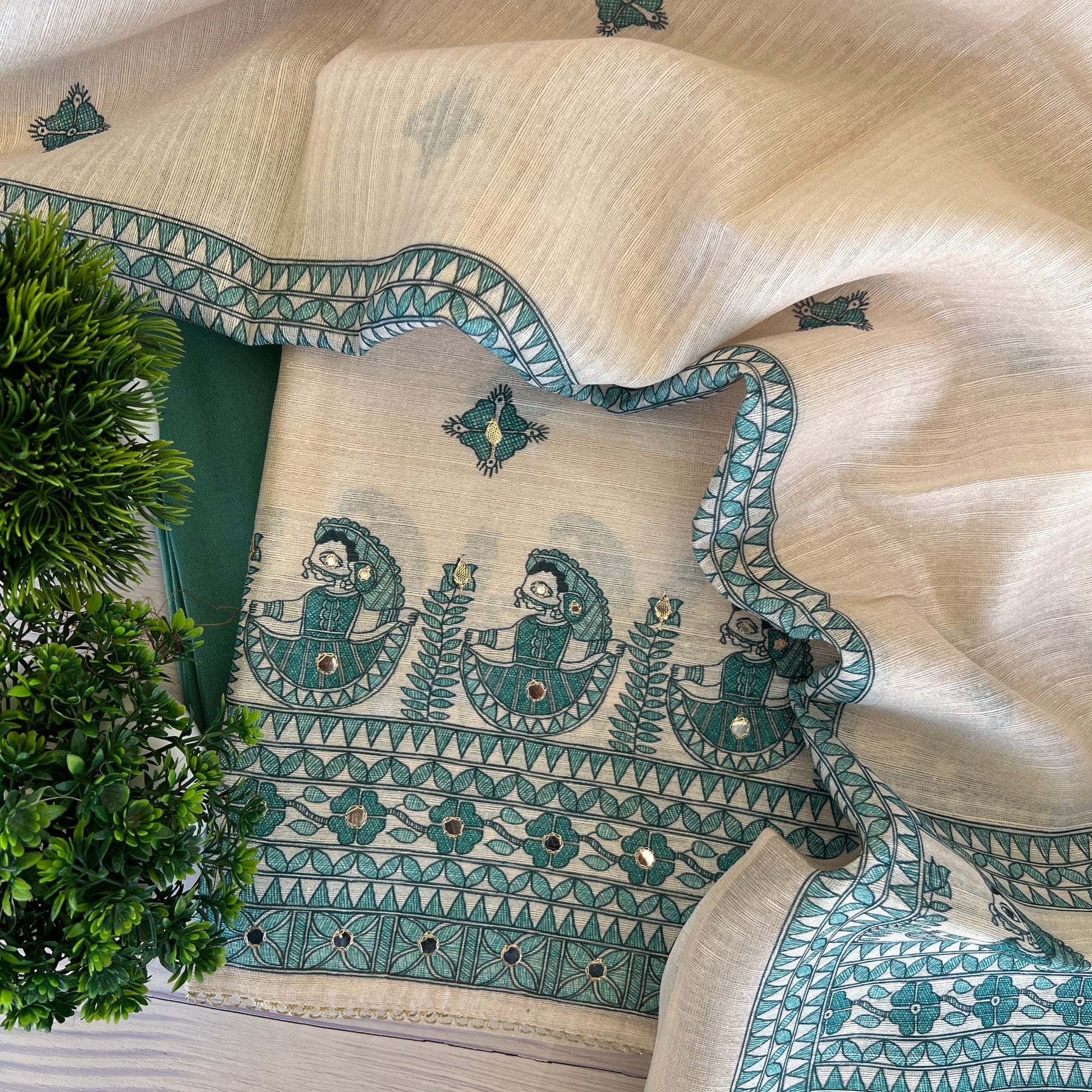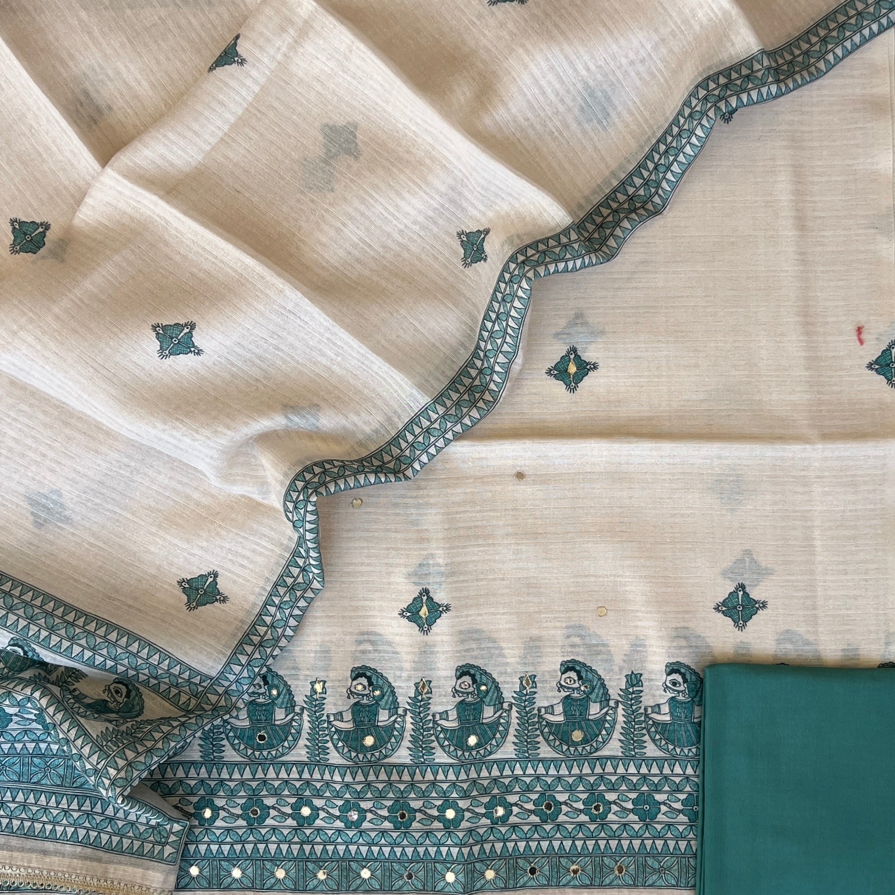 Kurta - Soft Fine Semi Geecha Tusser Printed Embroidered Kurta (2.5Mtr)