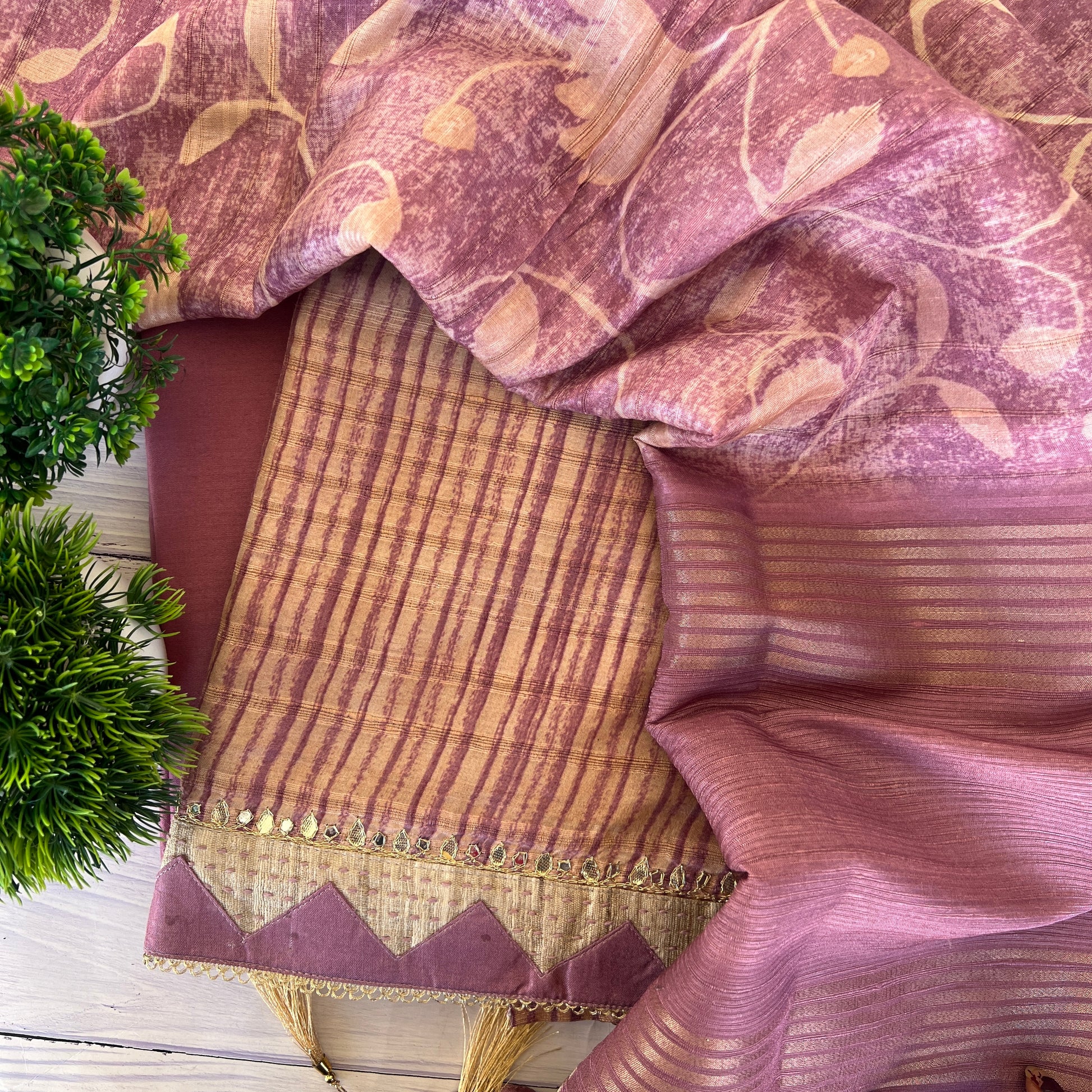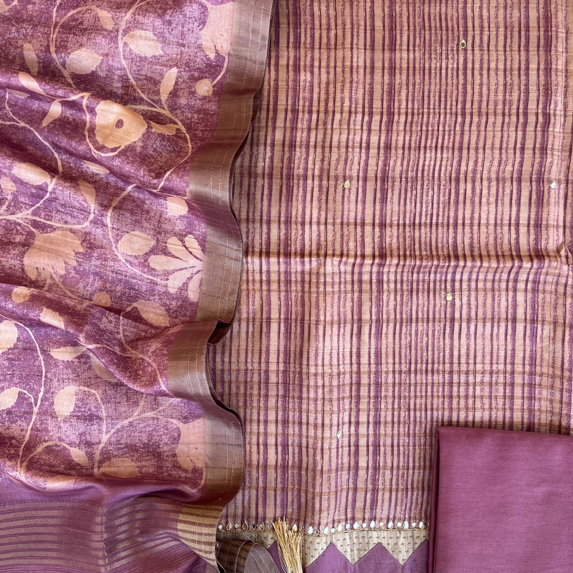 Kurta - Semi Giccha Silk Fine Hand Ghoota Work Kurta With Kantha Work (2.5Mtr)