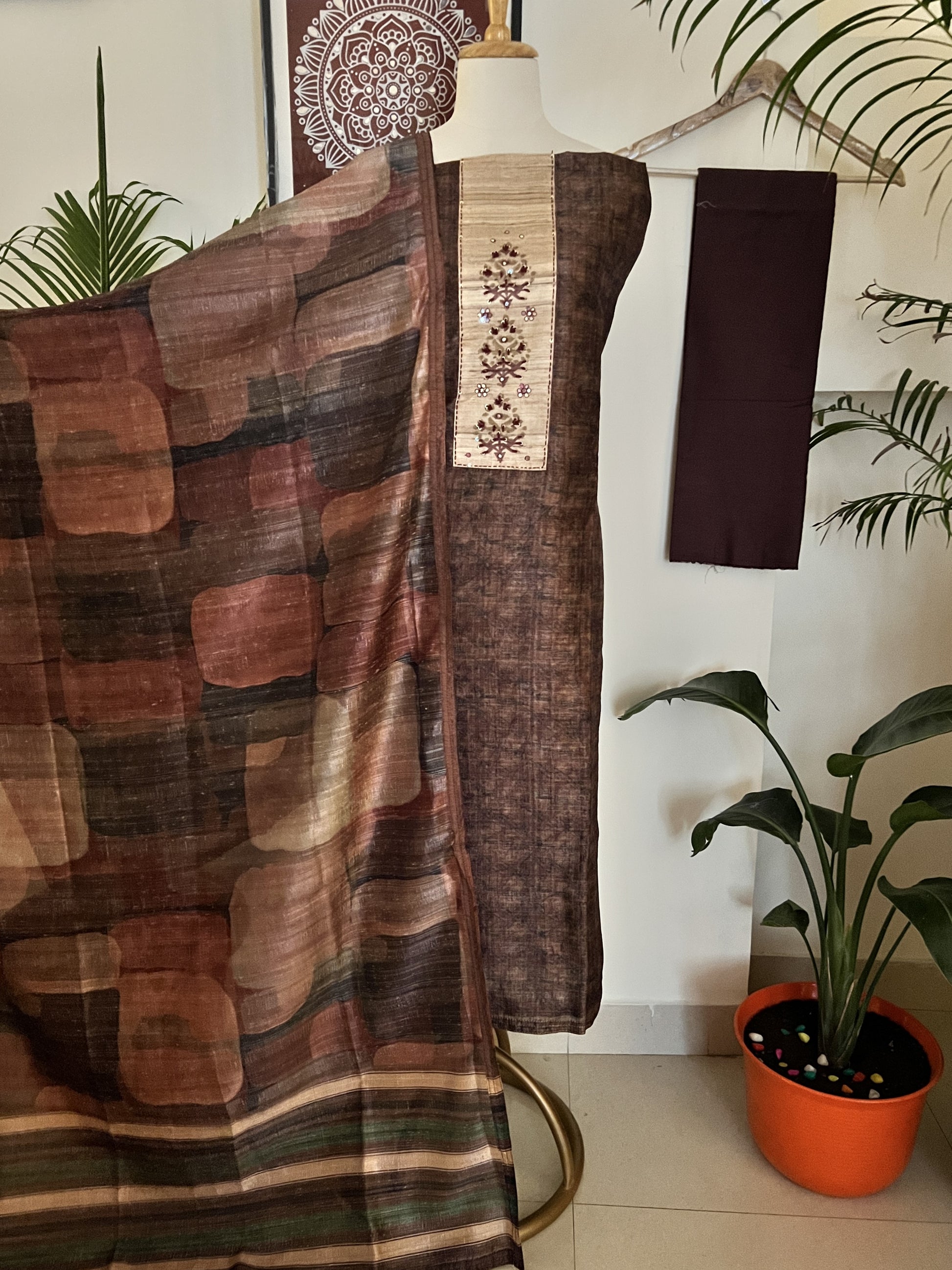 Kurta - Semi Giccha Digital Print Kurta With Fine Handwork (2.5Mtr)