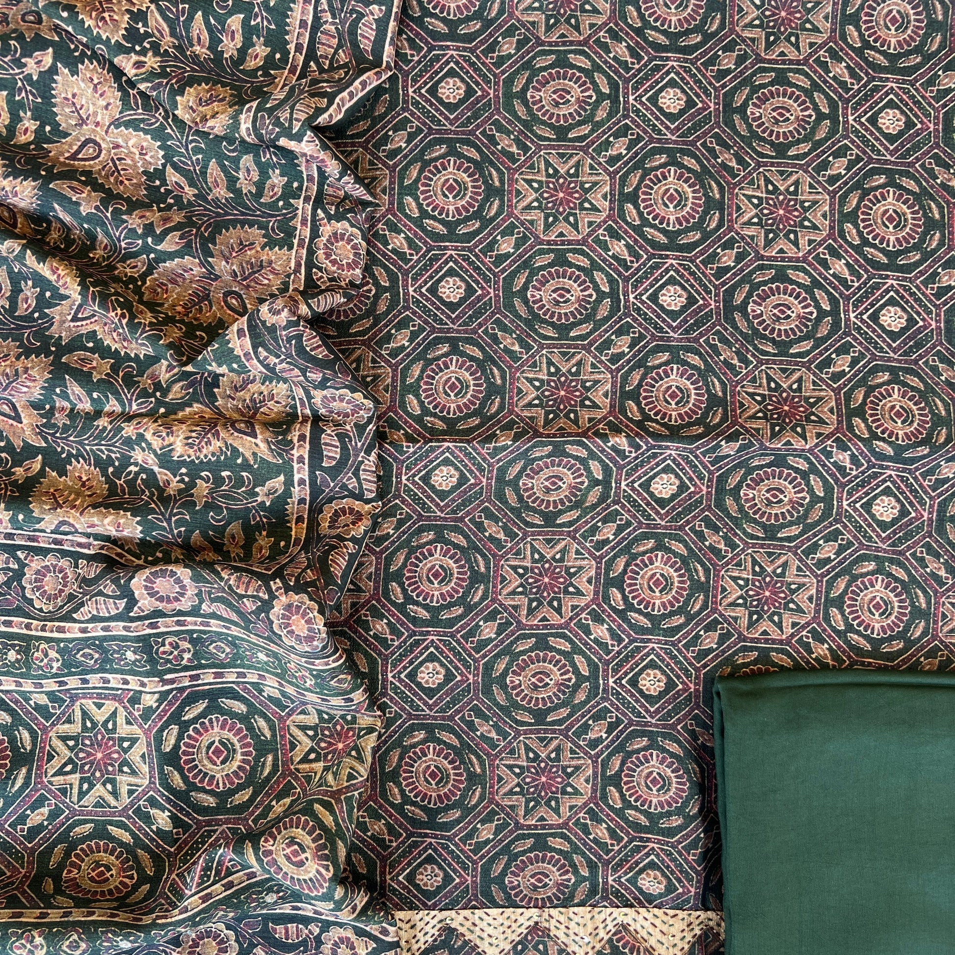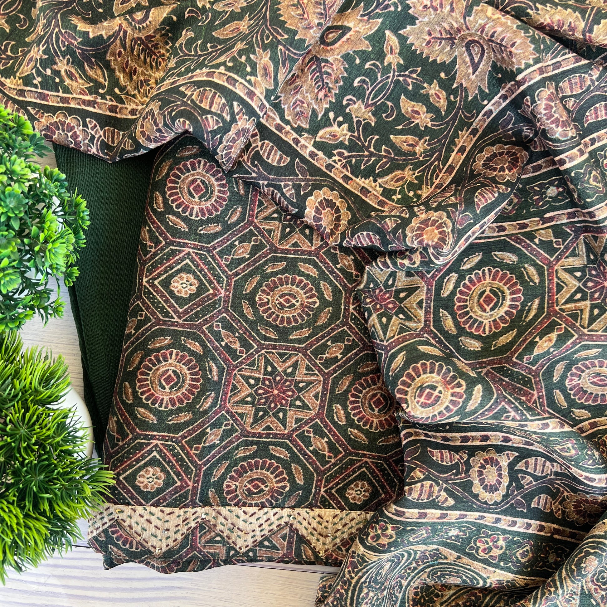 Dupatta - Semi Giccha Tusser Ajrakh Print Dupatta (2.5Mtr)