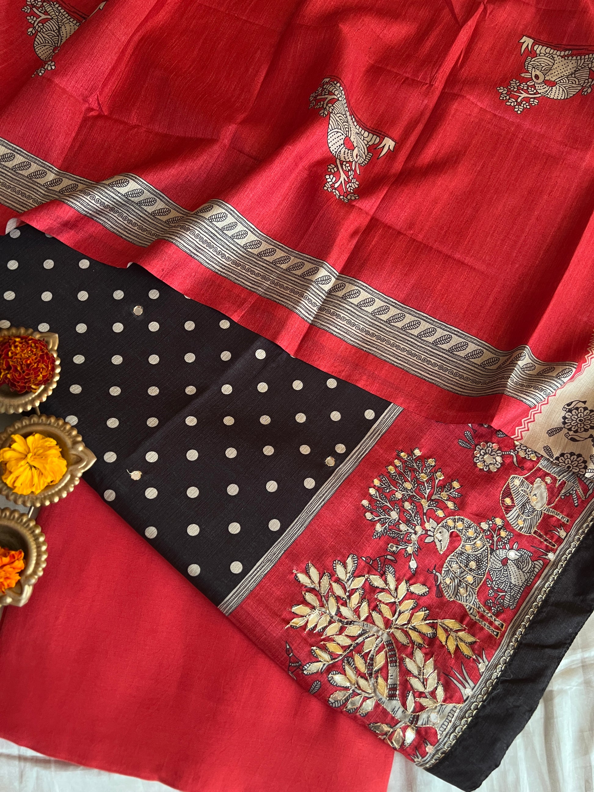 Dupatta - Fine Semi Tussar Madhubani Print Dupatta (2.5Mtr)