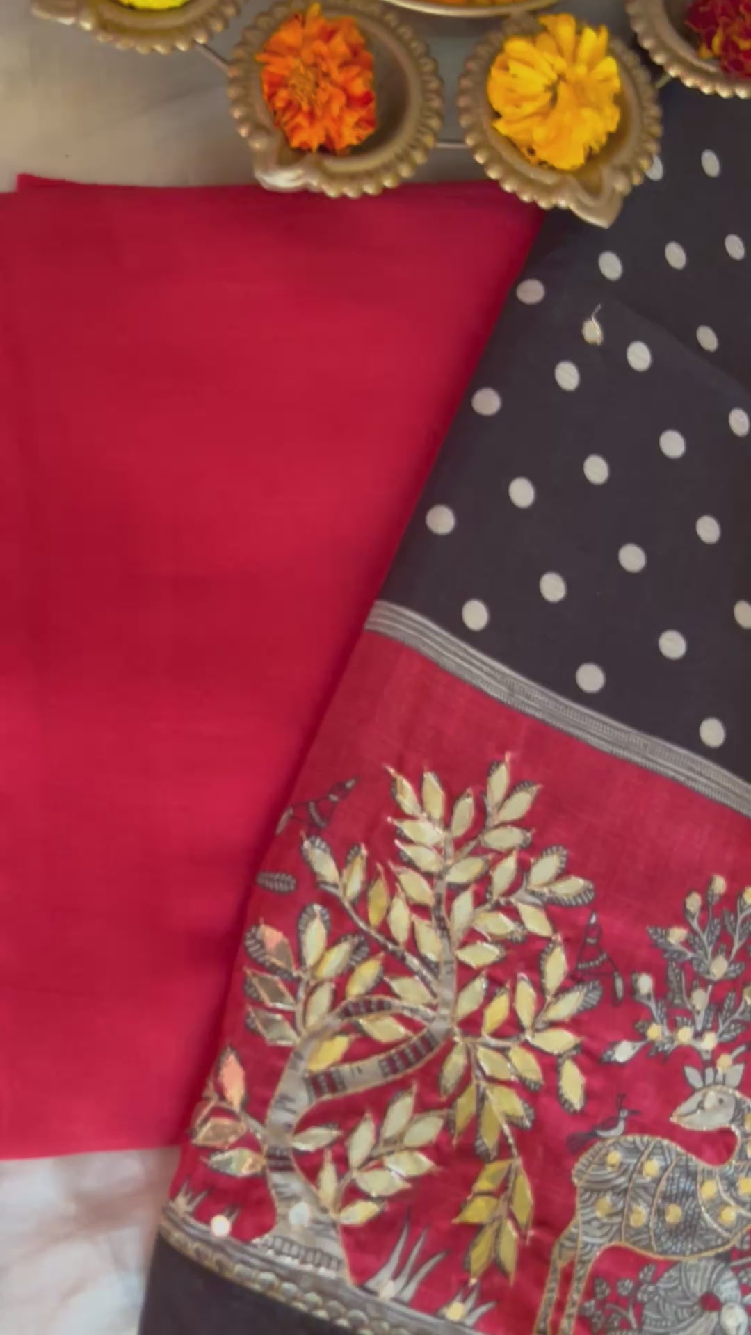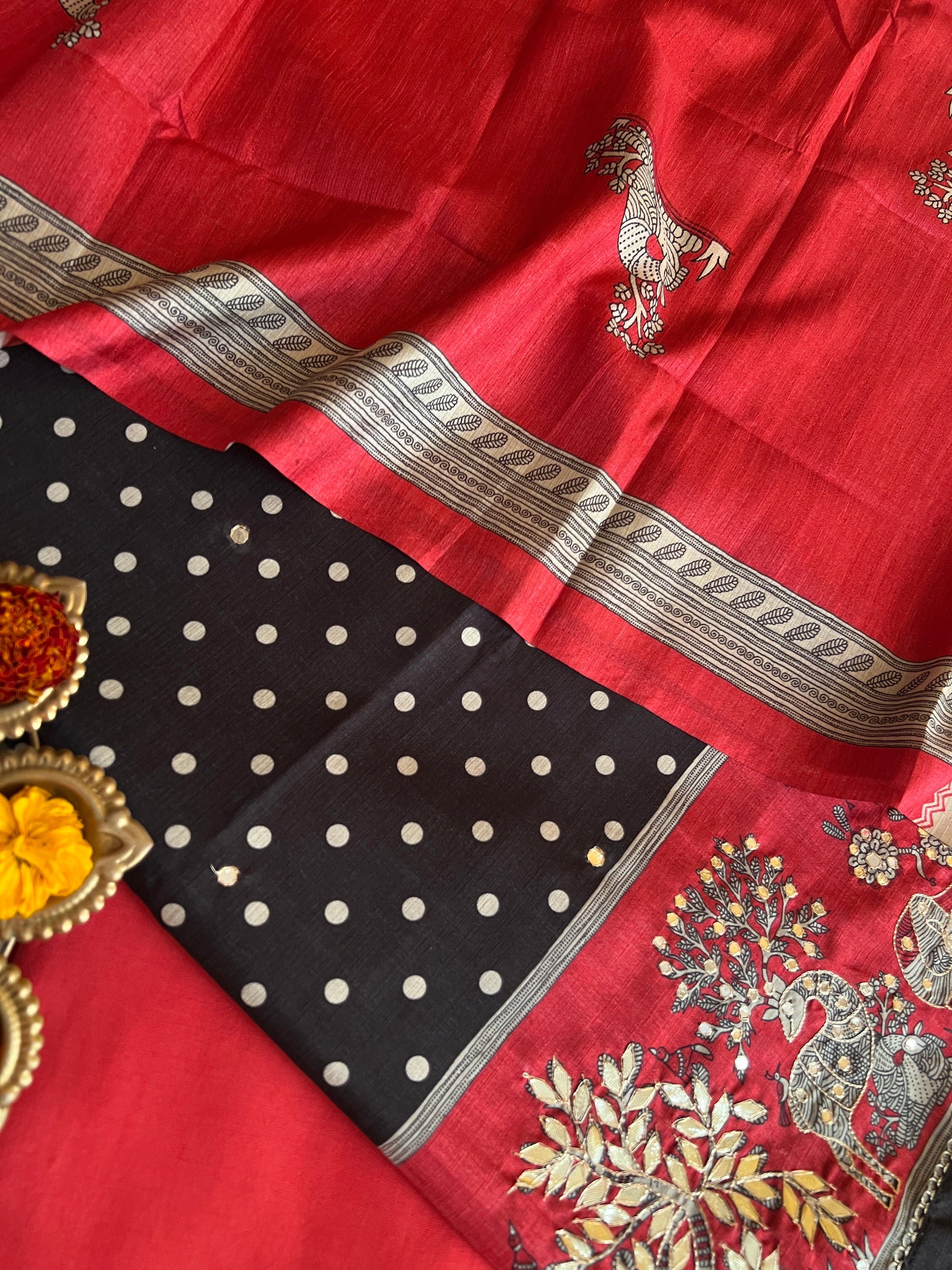 Kurta - Fine Semi Tussar Fusion of Madhubani & Geometric Print Kurta With Fine Handwork Detailing (2.5Mtr)