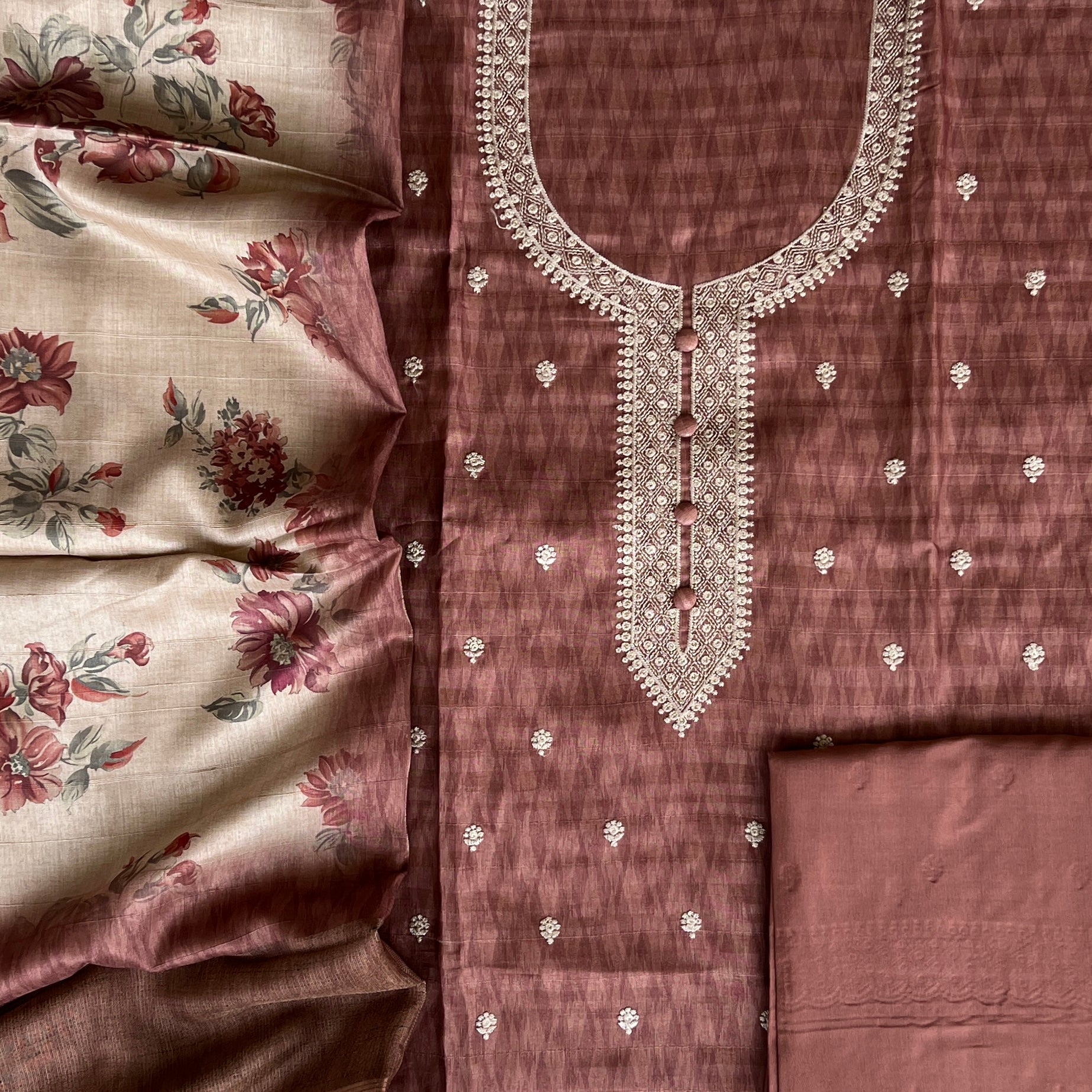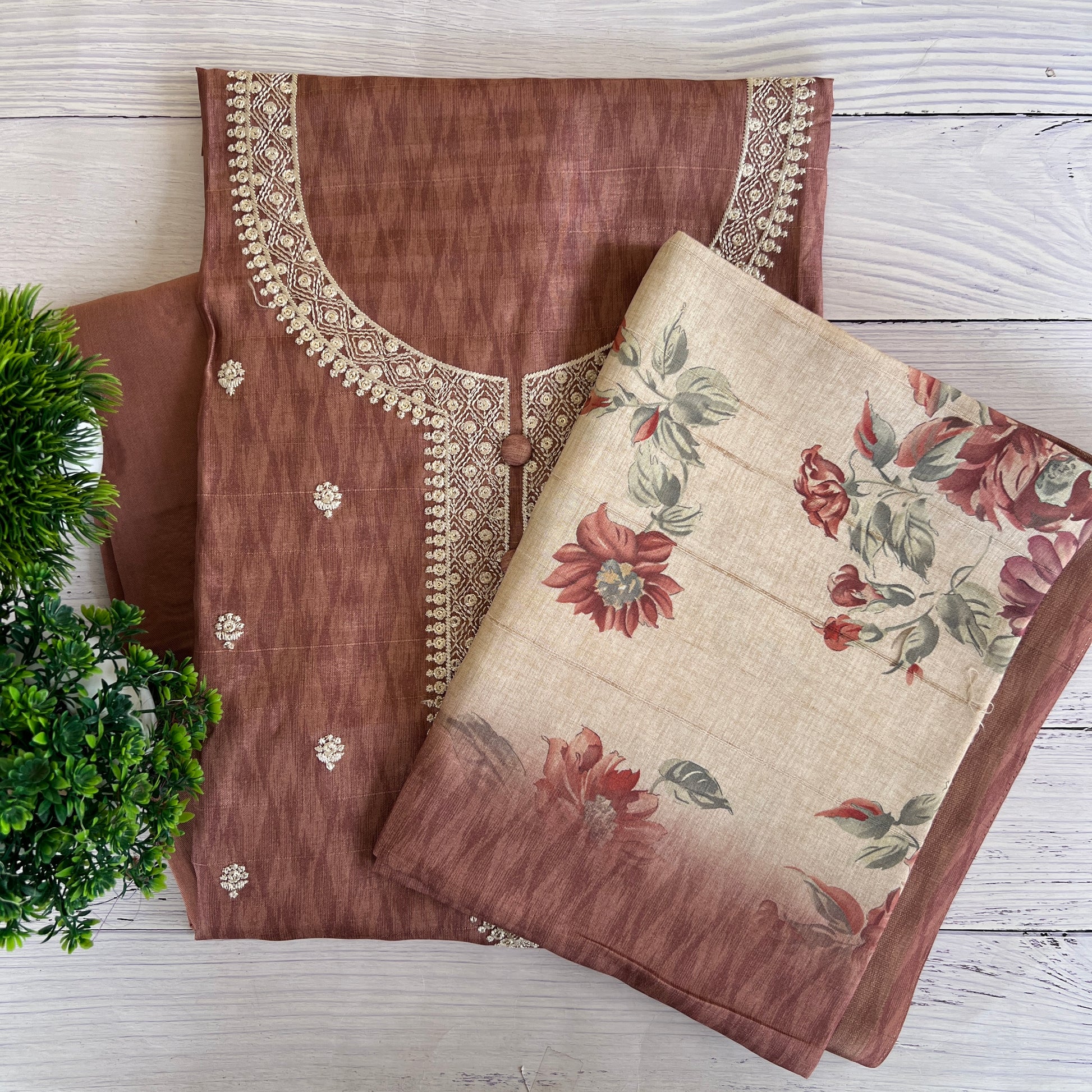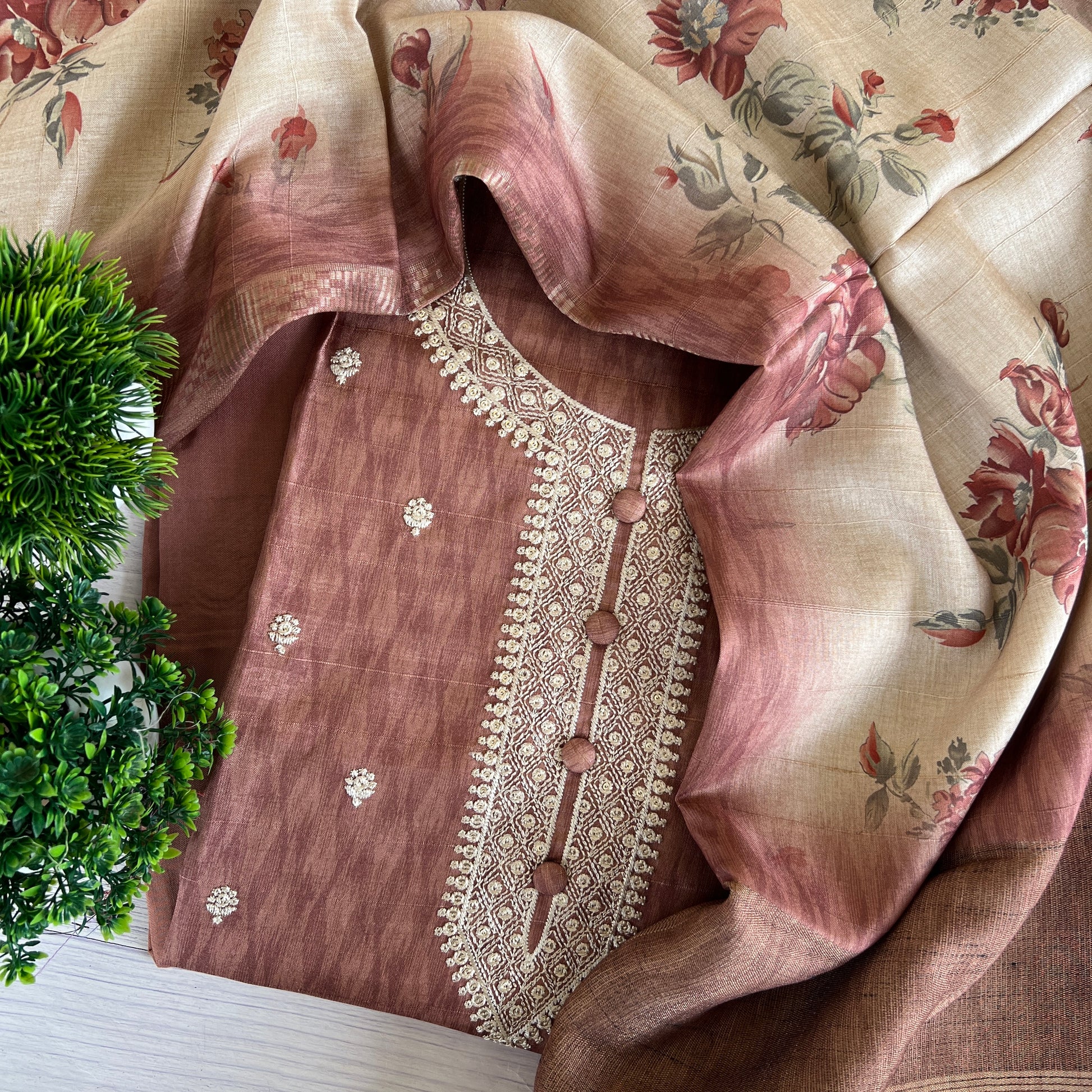 Kurta - Semi Tusser Fine Embroidery Kurta (2.5Mtr)