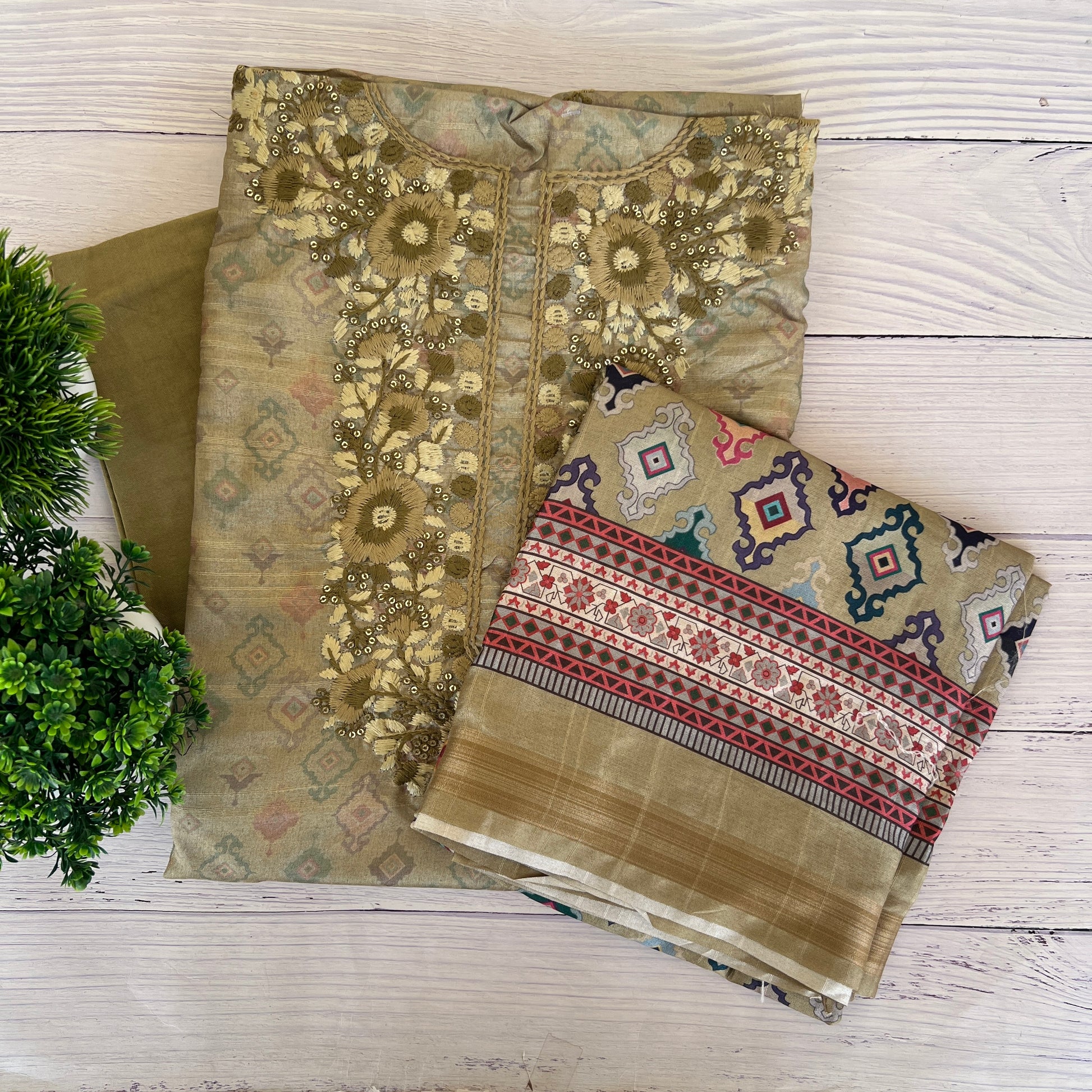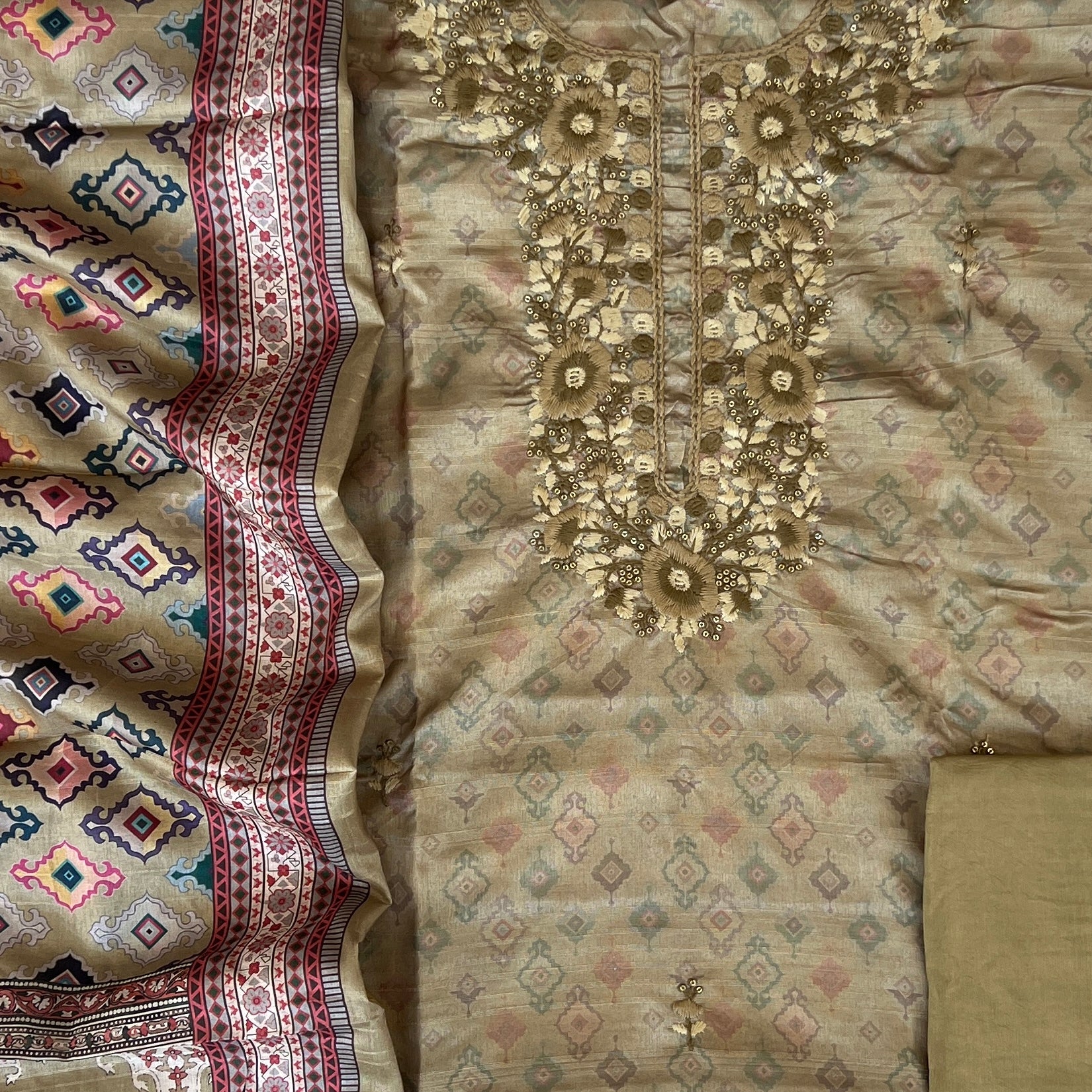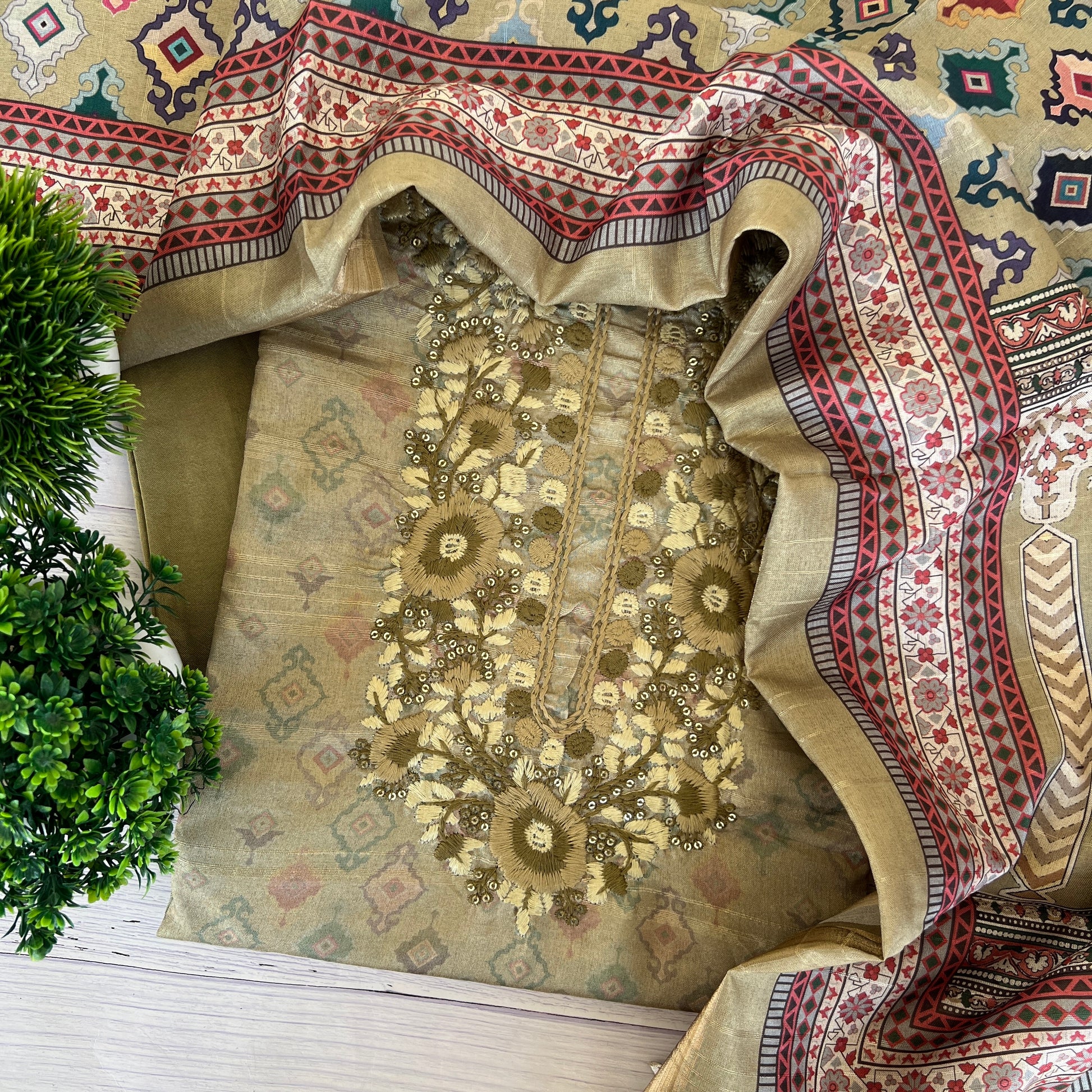 Kurta - Semi Tusser Fine Embroidery Kurta (2.5Mtr)