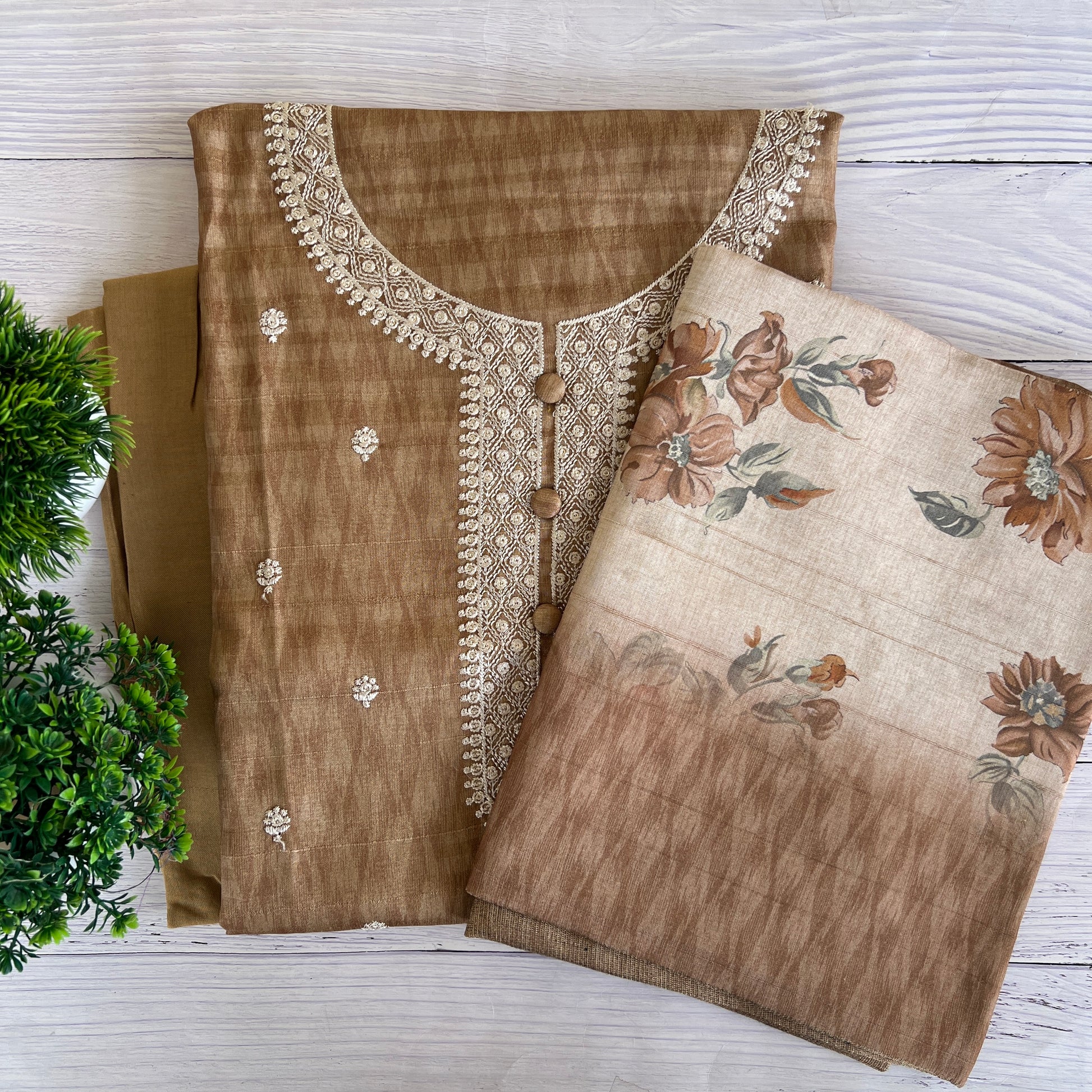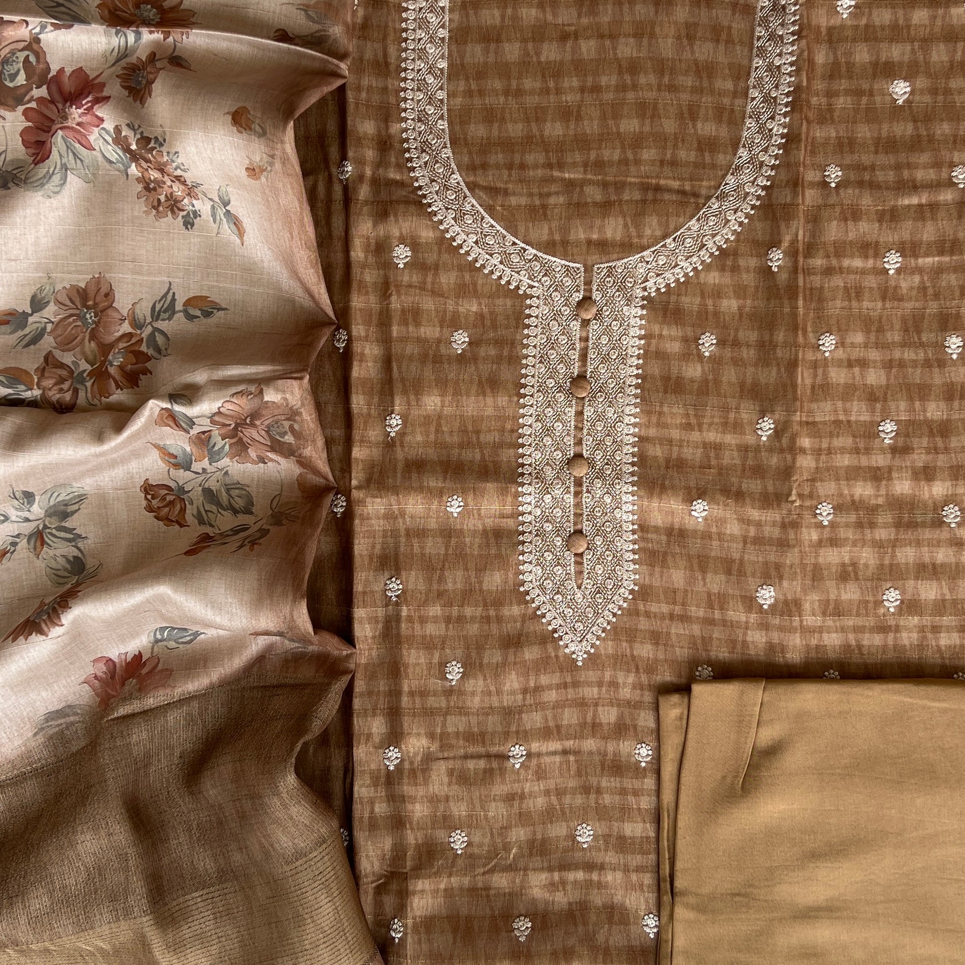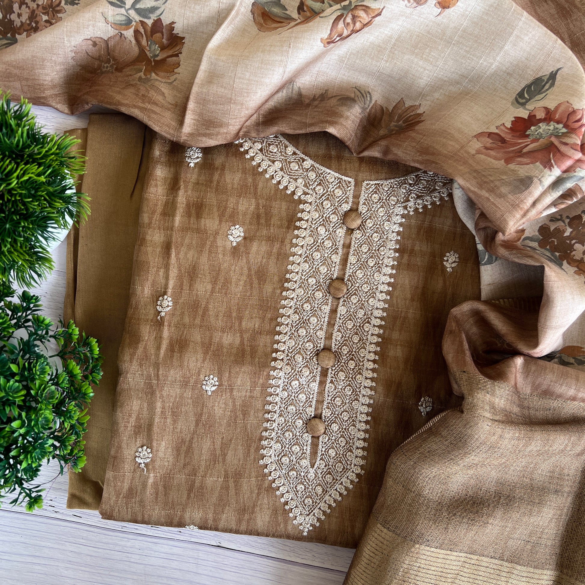 Kurta - Semi Tusser Fine Embroidery Kurta (2.5Mtr)