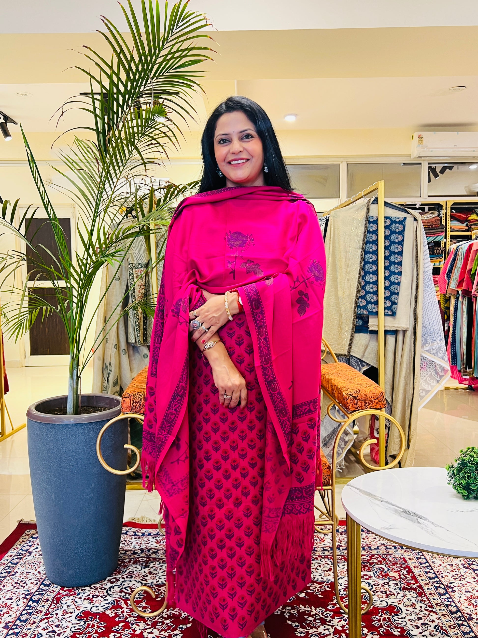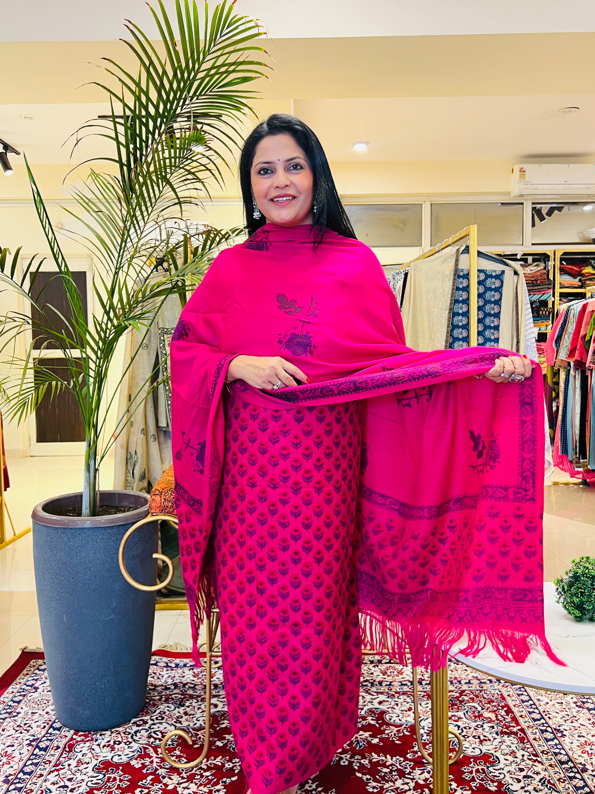 Kurta - Fine Spun Pashmina Block Print Kurta (2.5Mtr)