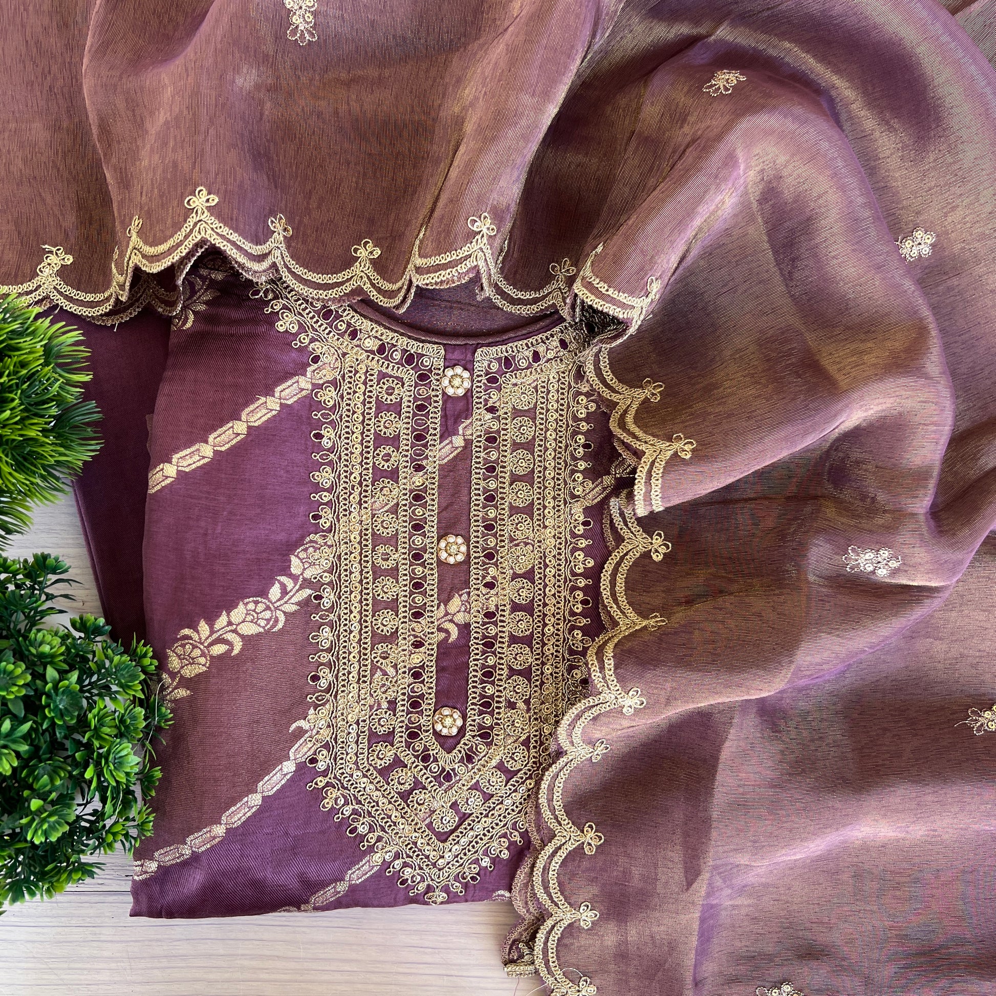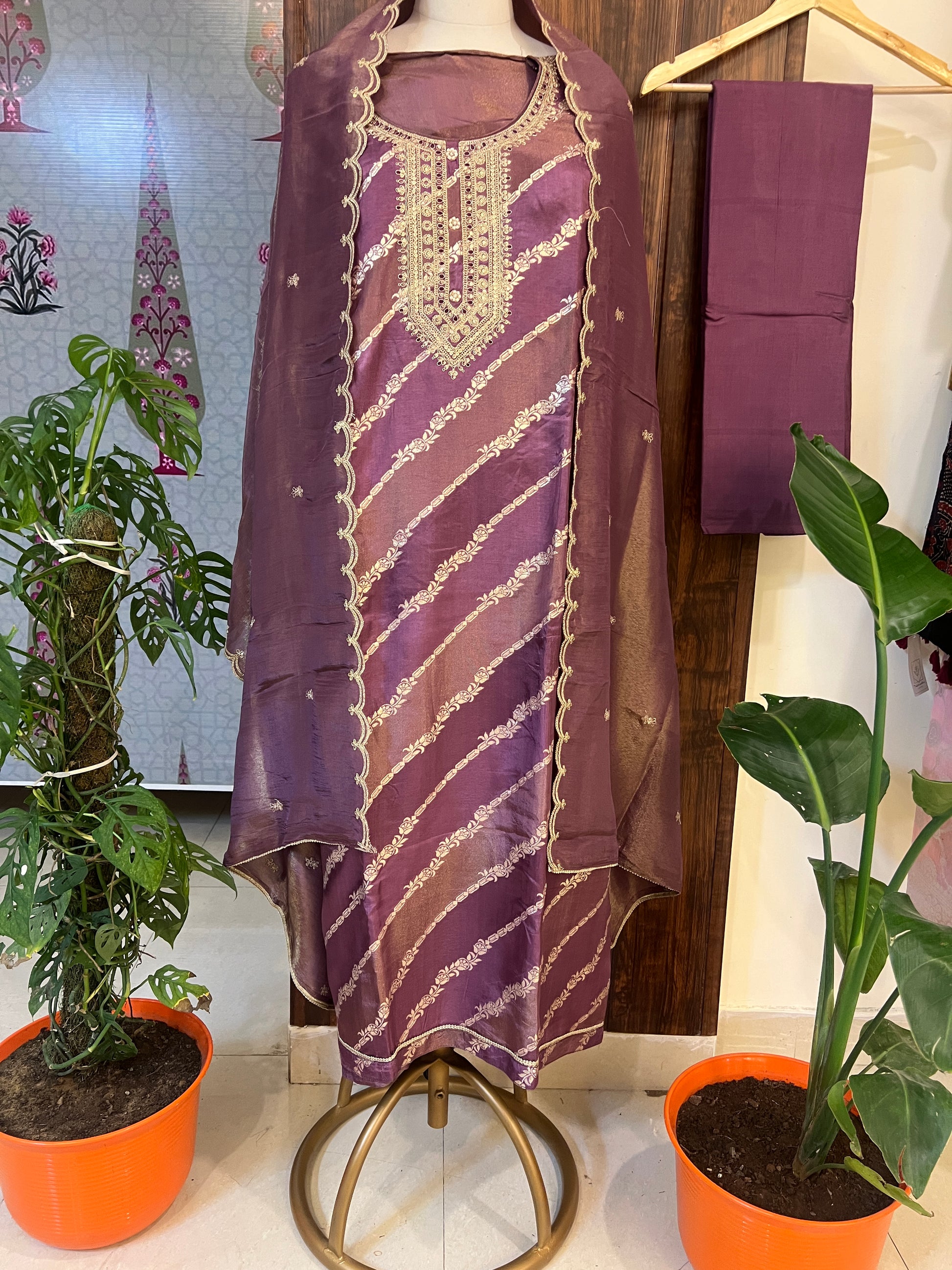 Kurta - Soft Tissue Chanderi Banarsee Weaved Embroidred Kurta (2.5Mtr)
