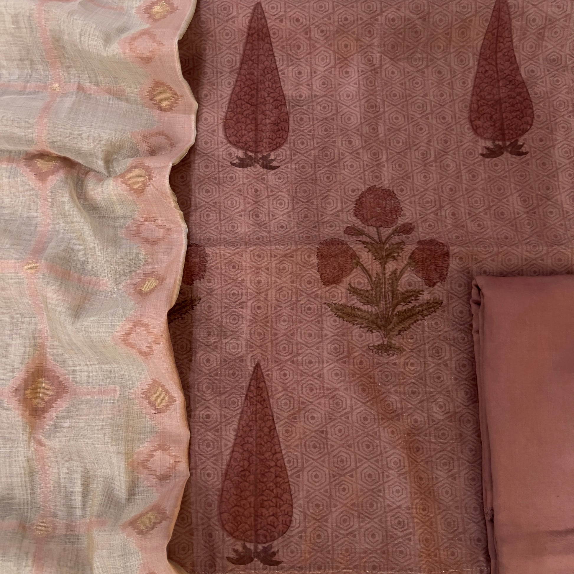 Kurta - Soft Tissue Chanderi Mugal Block Print Kurta (2.5Mtr)