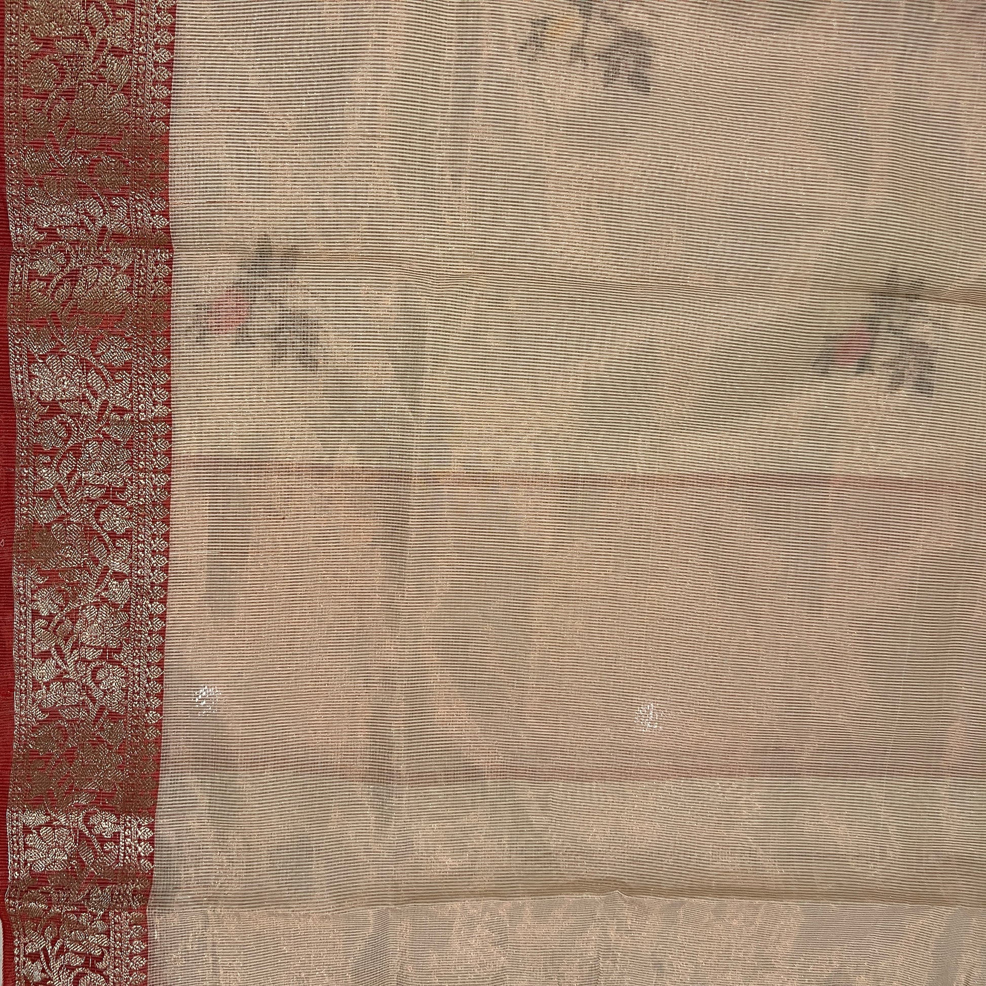 Elegant Tissue Doriya Saree adorned with Banarasi border and delicate cross-stitch embroidery all over. ✨